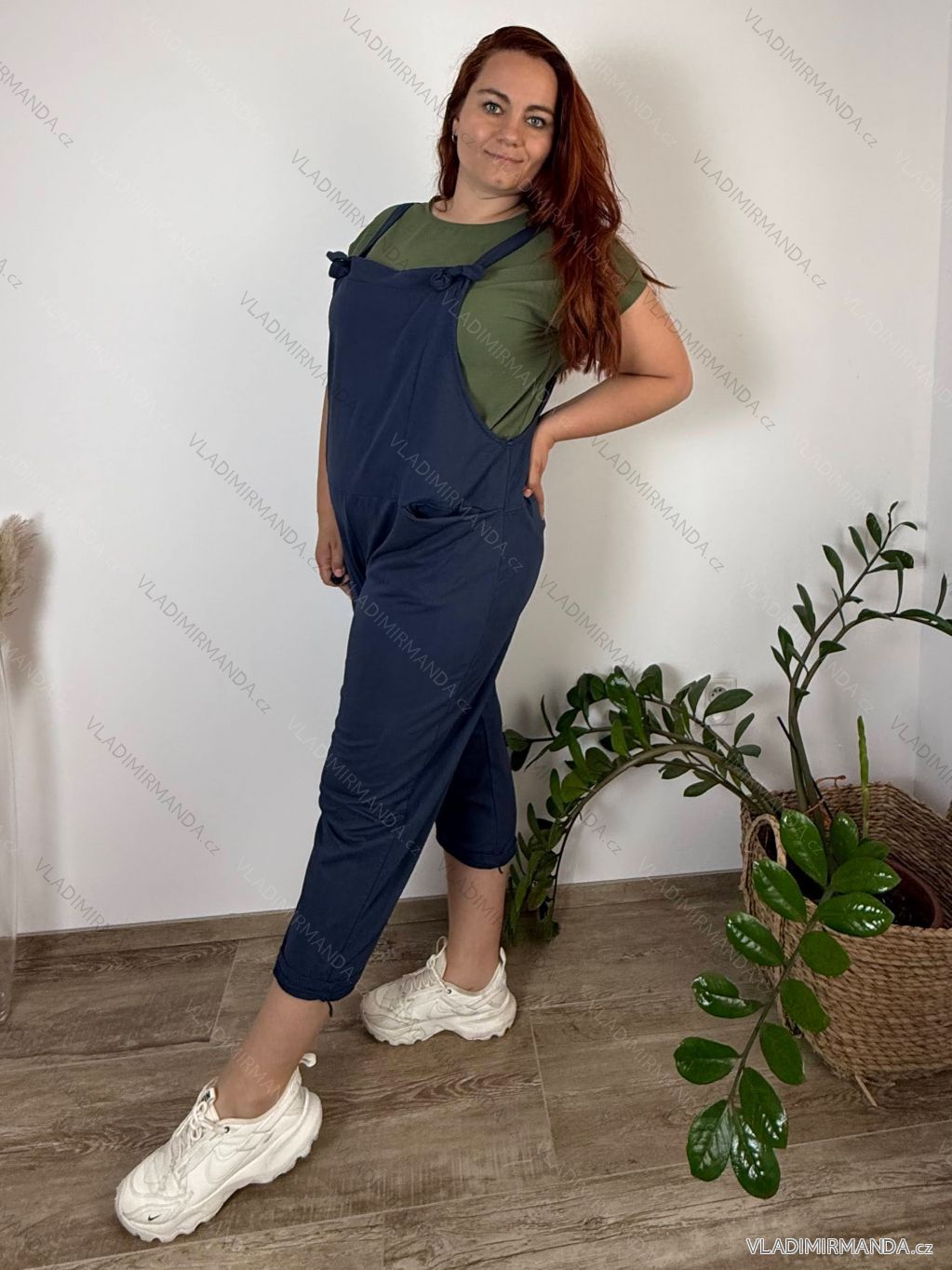 Nohavice teplákové dlhé s trakmi dámske nadrozměr DORA (44/46/48 ONE SIZE) TALIANSKA MÓDA IMHMM246580/DUR 46/48 tmavo modrá