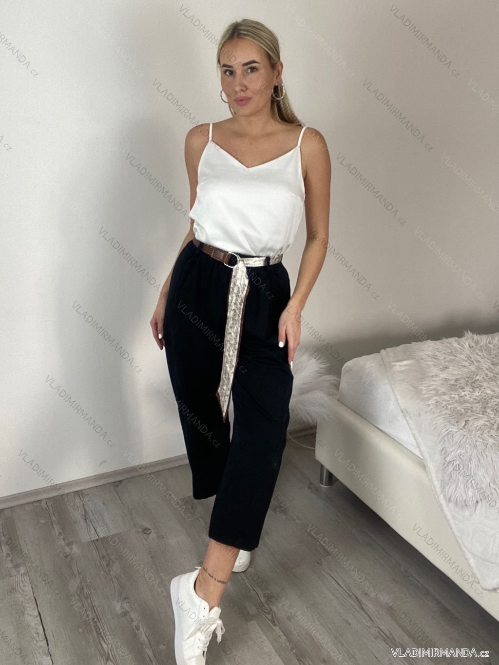Nohavice volnočasové s opaskom dámske OLIV (S/M/L ONE SIZE) TALIANSKA MÓDA IMSM261122/DR S/M/L čierna