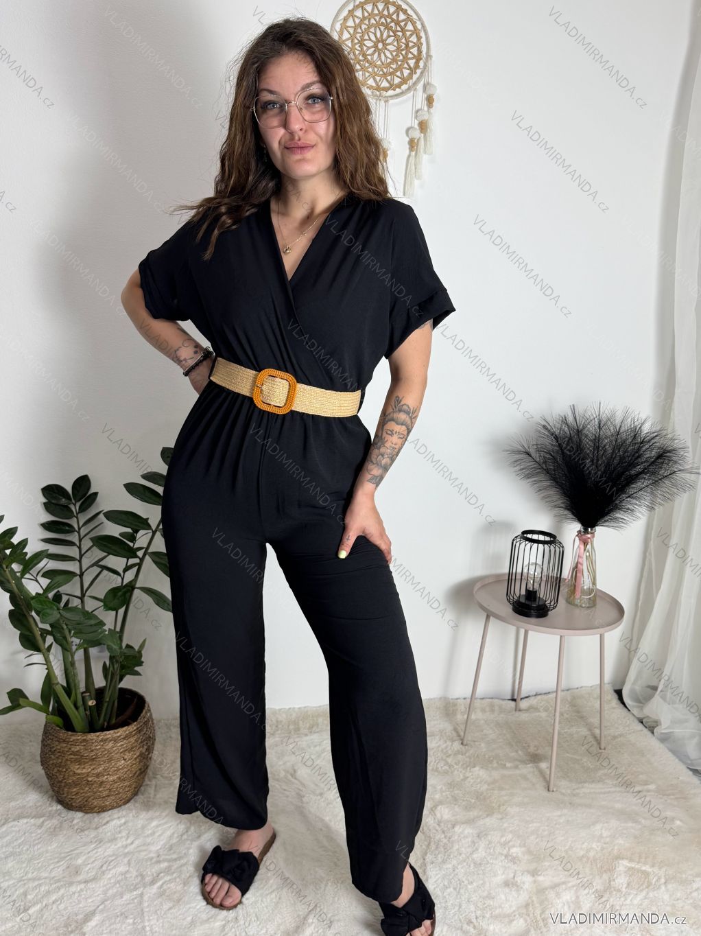 TOVAR (120690) > oblečenie dámske (81793) > overaly (1224) > Overal dlhý s opaskom krátky rukáv dámske (S/M/L ONE SIZE) TALIANSKA MÓDA IMWCN24010