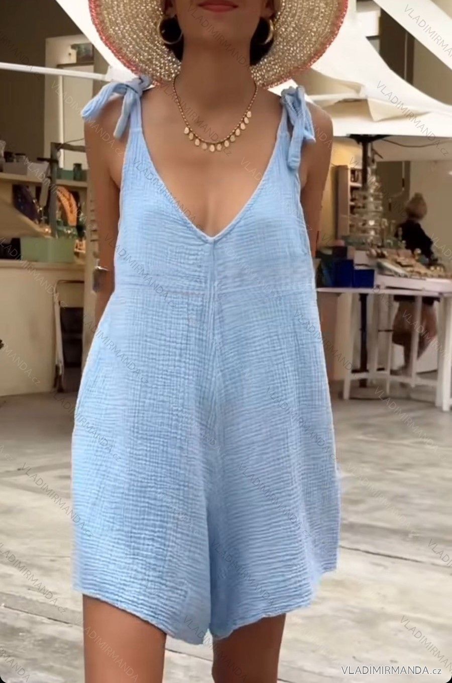 TOVAR (120634) > oblečenie dámske (81739) > overaly (1224) > Overal krátky na ramienka mušelín dámsky (S/M/L ONE SIZE) TALIANSKA MÓDA IMWCN24052