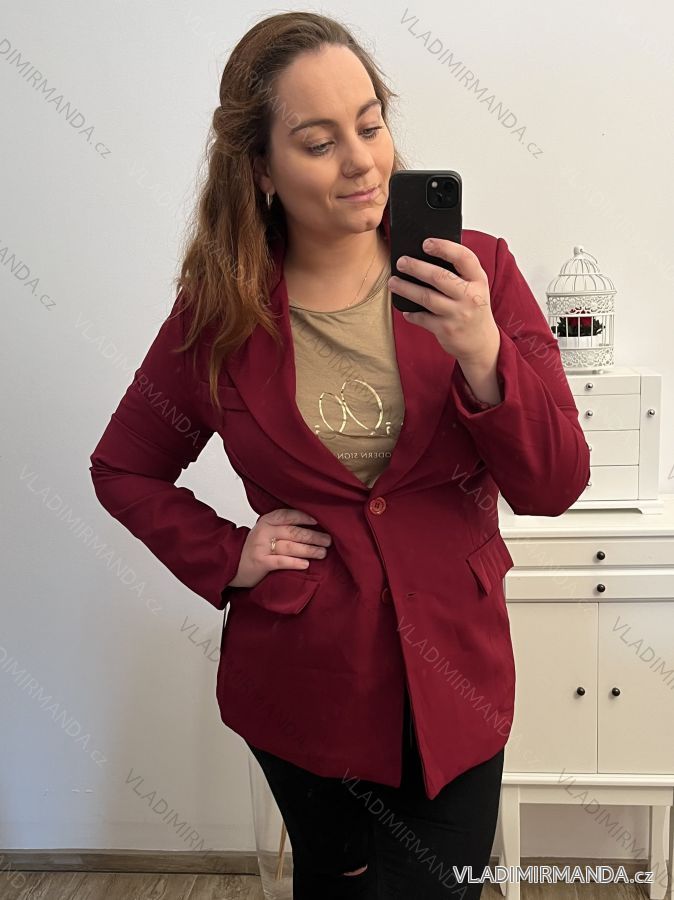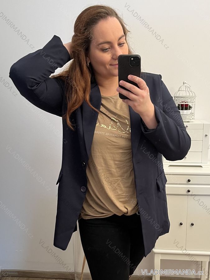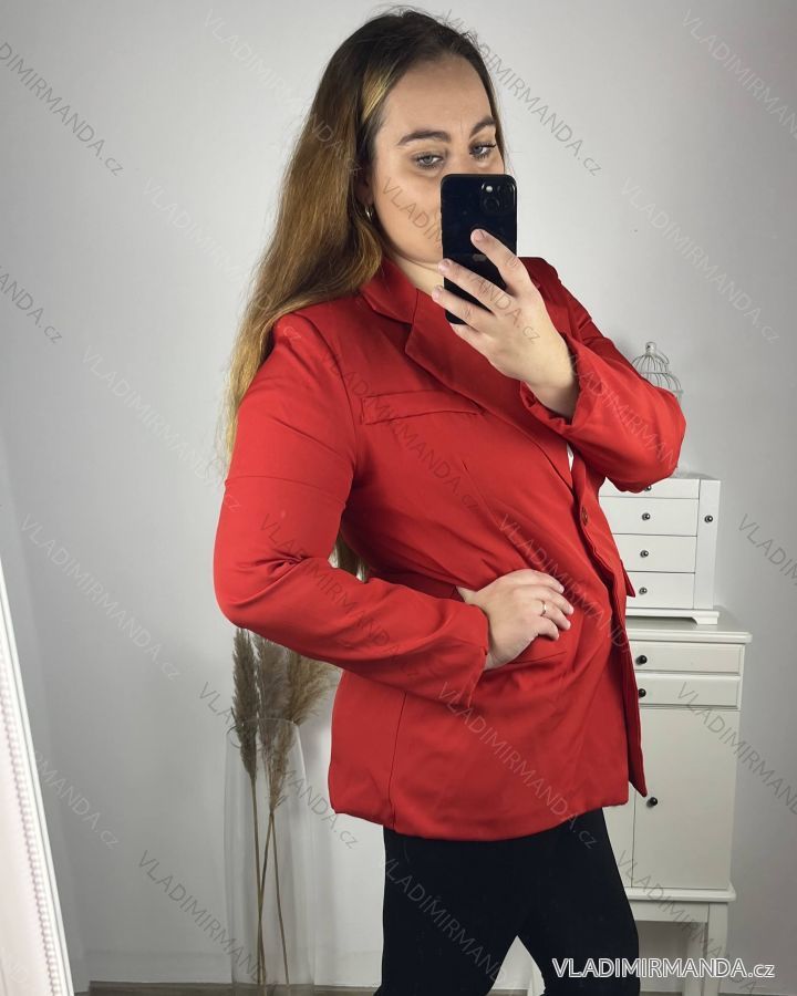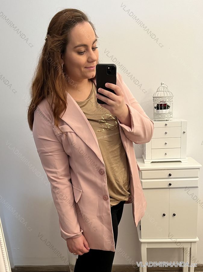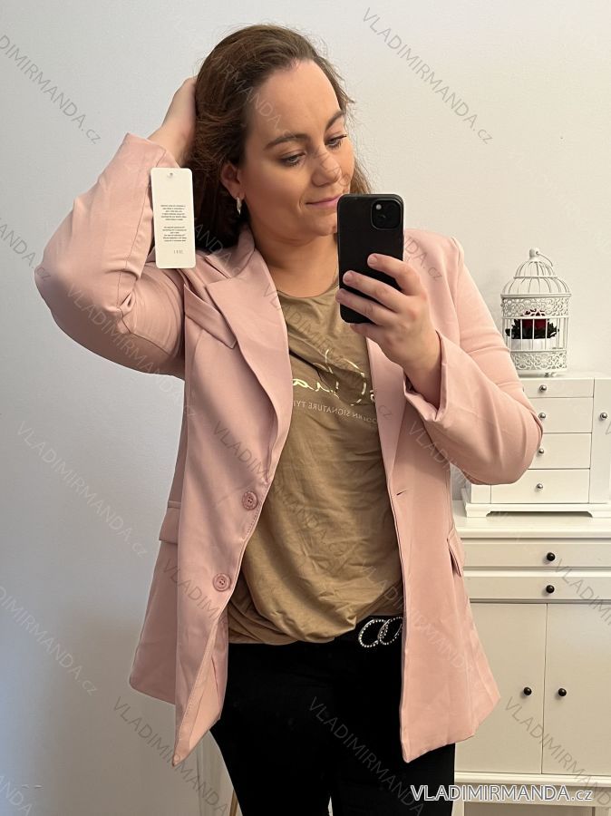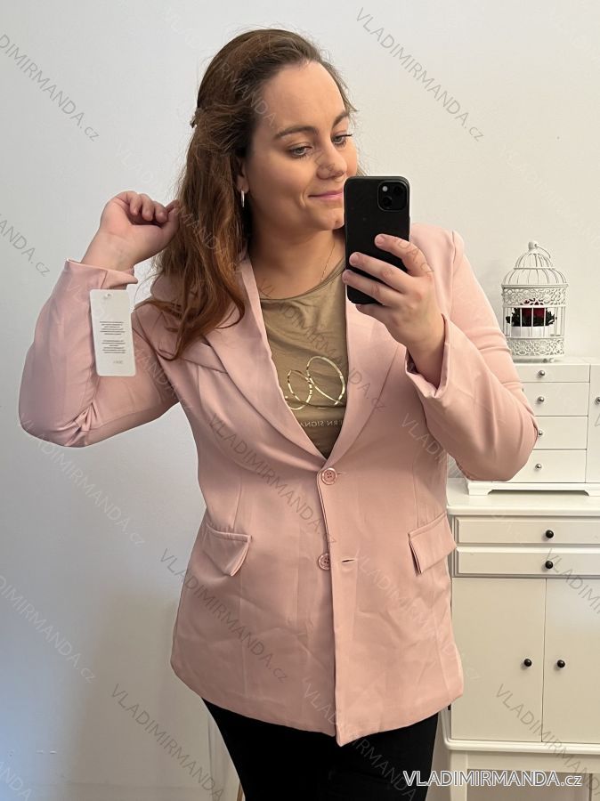 Sako dlhý rukáv dámsky nadrozmer (L/XL//2XLONE SIZE) TALIANSKA MÓDA IM422MARIA/DU L/XL ružová