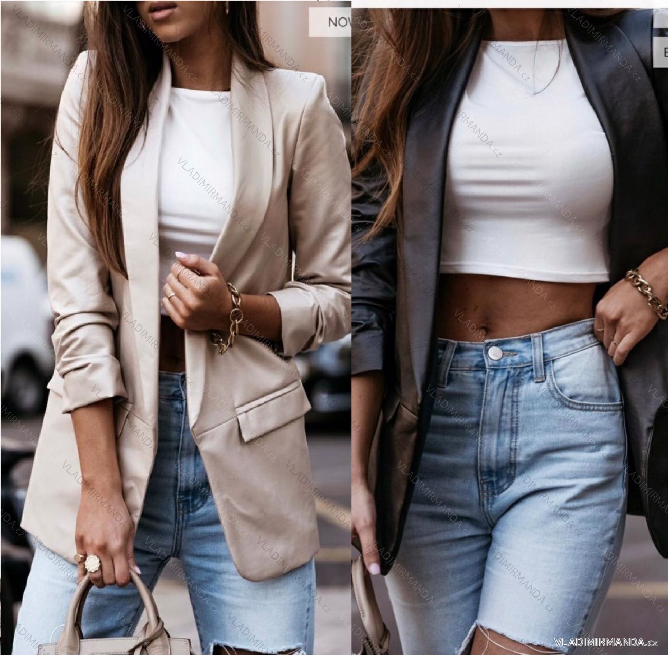 TOVAR (120725) > oblečenie dámske (82091) > Bundy, kabáty, vesty a saka (8838) > Sako elegantní koženkové dlouhý rukáv dámské (S-XL) ITALSKÁ MÓDA IMWD211126