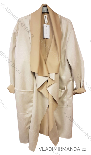 TOVAR (120686) > oblečenie dámske (82136) > Bundy, kabáty, vesty a saka (8839) > Sako prodlžené broušená koženka dámský (uni M/L) ITALSKá MóDA IMWMS2311290/DU béžová M / L