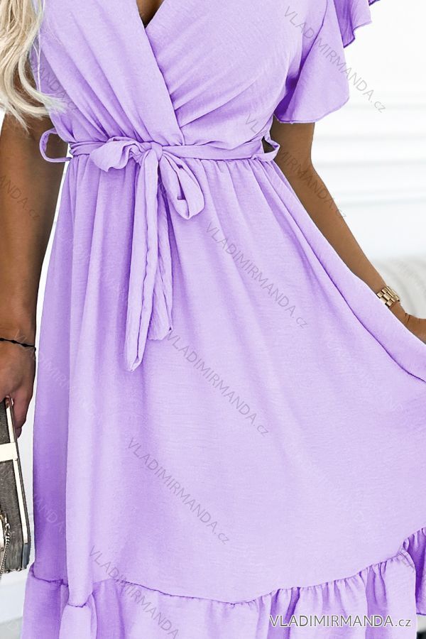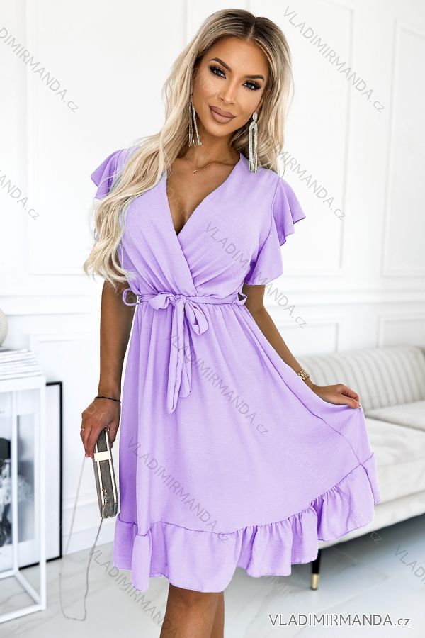 CORNELIA - šaty s obálkovým výstrihom , volánmi a zaväzovaním v páse. Farba: vres. Značka Numoco . európskej produkcie.