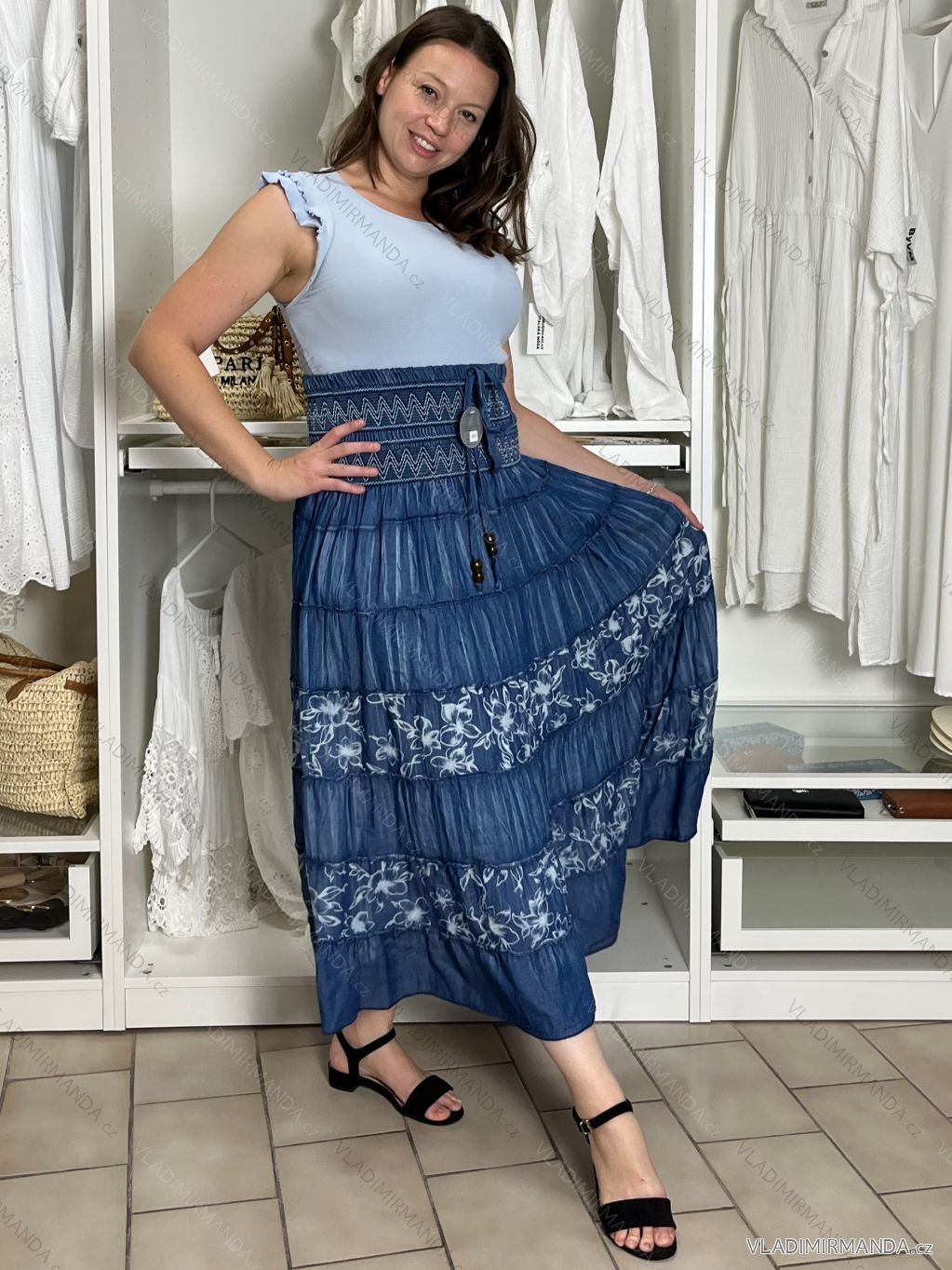 Šaty alá Sukňa dlhá letná dámska STAR (S/M/L ONE SIZE) TALIANSKA MÓDA IMPEM251111-2/DU S/M/L modrá