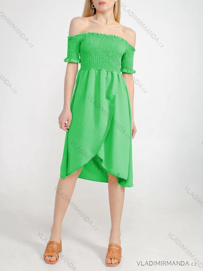 Šaty carmen cez ramená letné dámske (S/M ONE SIZE) TALIANSKA MÓDA IMM23M5368/DU zelená