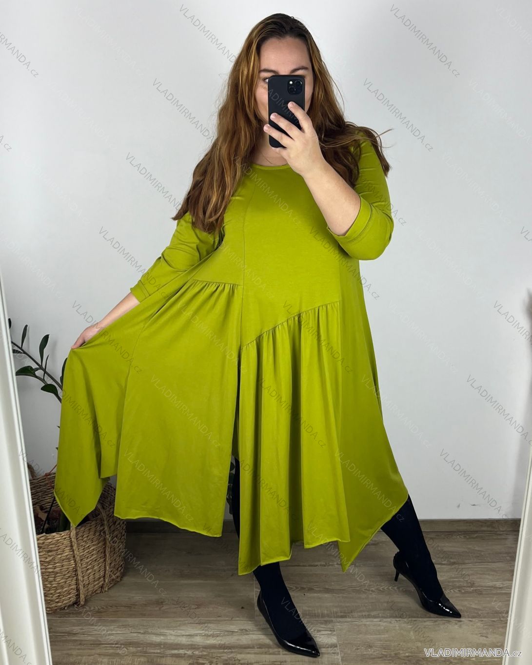 Šaty dlhé 3/4 dlhý rukáv dámske nadrozmer (50/52/54 ONE SIZE) TALIANSKA MÓDA IMC24376/DU 50/52 zelená