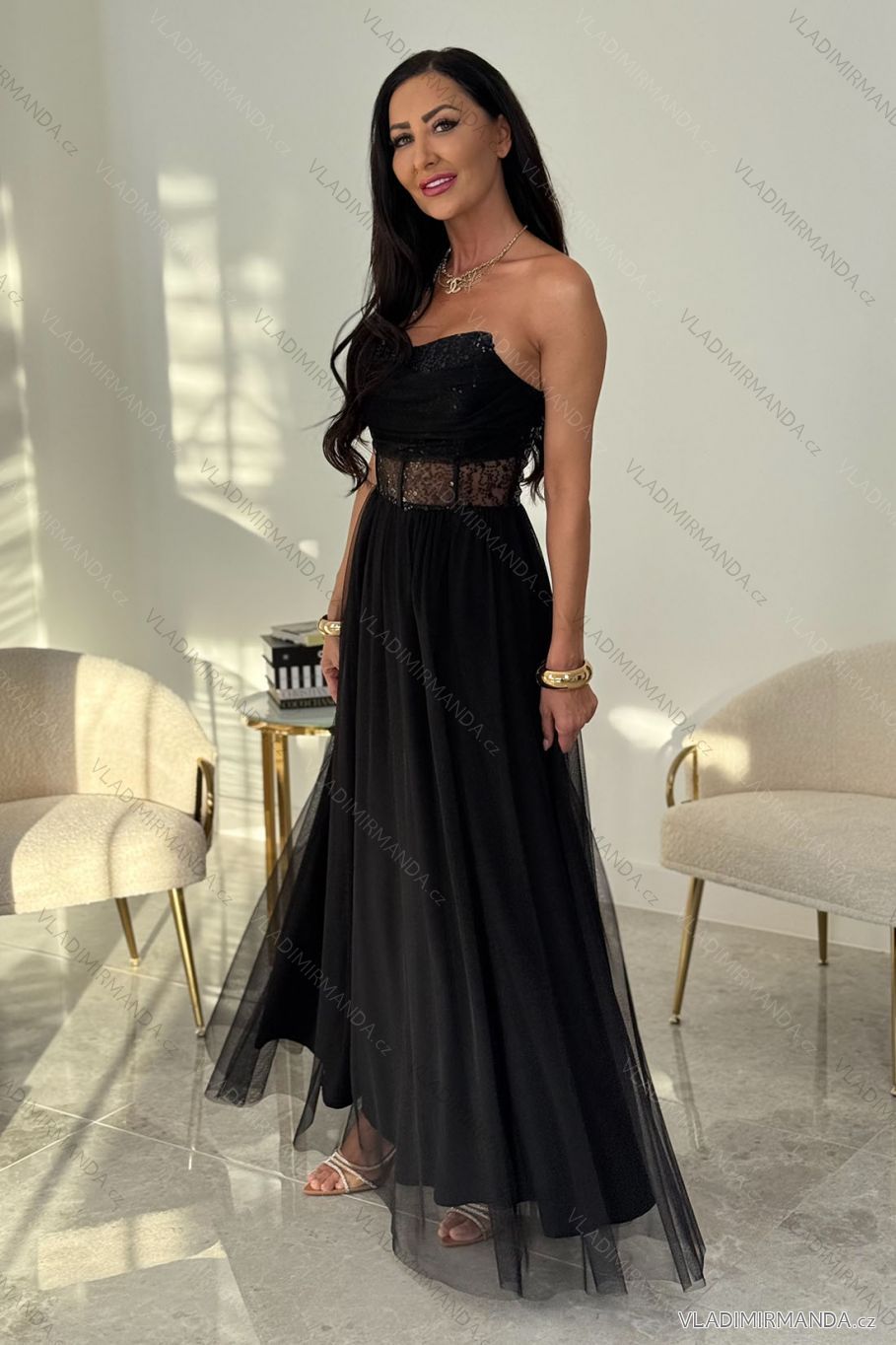 TOVAR (120596) > oblečenie dámske (81706) > šaty (30700) > Šaty carmen cez prsia (1311) > Šaty dlouhé carmen společenské s flitry dámské (32-42) POLSKÁ MÓDA PMLEL25AMAYA čierna