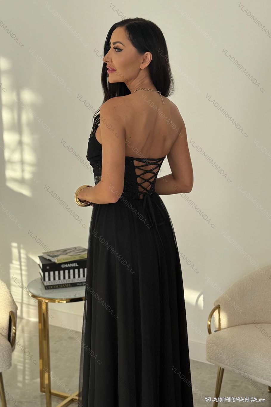 Šaty dlouhé carmen společenské s flitry dámské (32-42) POLSKÁ MÓDA PMLEL25AMAYA čierna