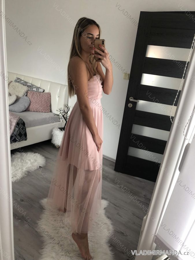 Šaty dlhé carmen tilové elegantné bez rukávov dámske (S/M ONE SIZE) TALIANSKA MÓDA IMM22Q52299