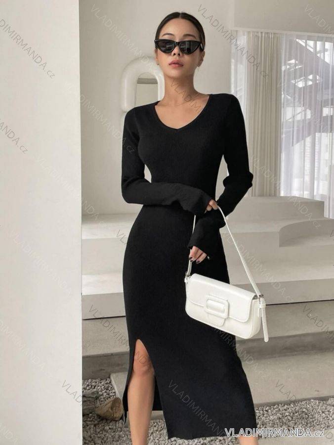 Šaty dlhé dlhý rukáv dámske (S/M ONE SIZE) TALIANSKA MÓDA IMM23M17886/DR Čierna S/M