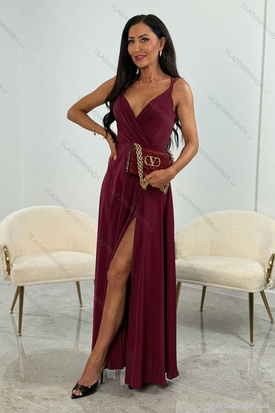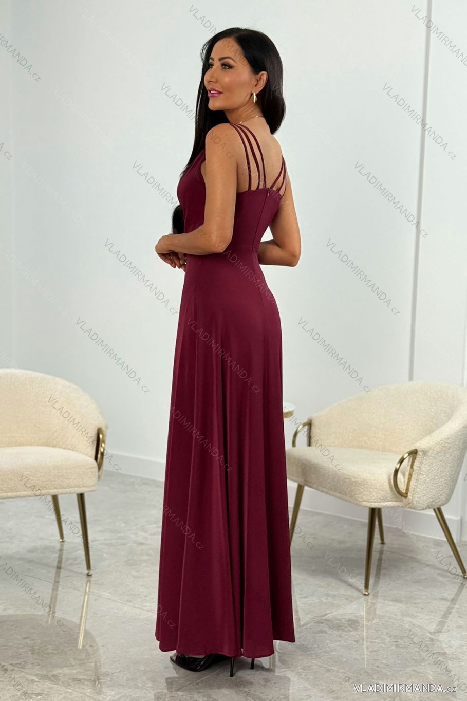 TOVAR (120596) > oblečenie dámske (81706) > šaty (30681) > Šaty dlhé maxi (8330) > Šaty dlhé maxi na ramienka (2479) > Šaty dlhé elegantné na ramienka dámske nadrozmer (32-42) POLSKÁ MÓDA PMLEL025MARINA1 vínová