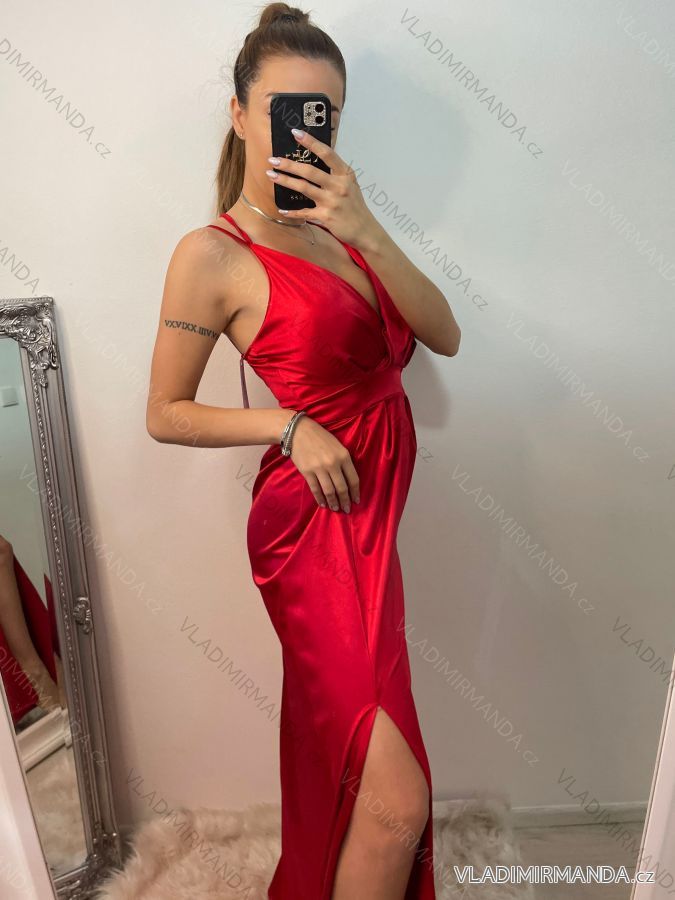 Šaty dlhé elegantné plesové na ramienka dámske (S/M ONE SIZE) TALIANSKA MÓDA IMWE226472