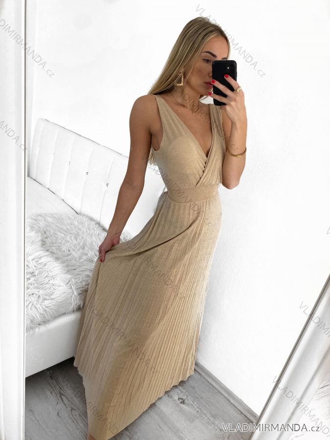 Šaty dlhé elegantné skladané na ramienka dámske (S/M ONE SIZE) TALIANSKA MÓDA IMPMD233570a/DR tmavo šedá S/M