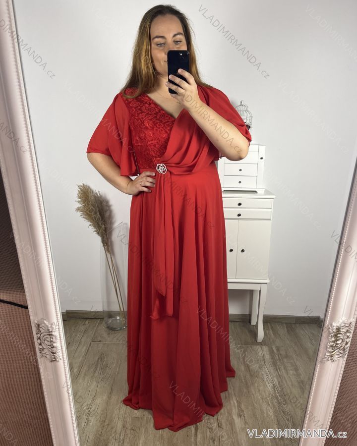 TOVAR (120798) > oblečenie dámske (81884) > šaty (30743) > Šaty dlhé elegantné spoločenské krátký rukáv dámske nadrozměr (2XL/3XL ONE SIZE) TALIANSKA MóDA IM423ISABELA/DU 2XL/3XL červená