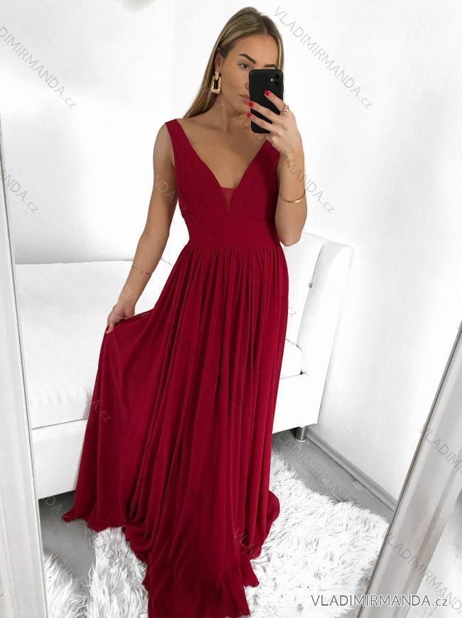 Šaty dlhé elegantné spoločenské na ramínka dámske (M/L ONE SIZE) TALIANSKA MóDA IM42380566