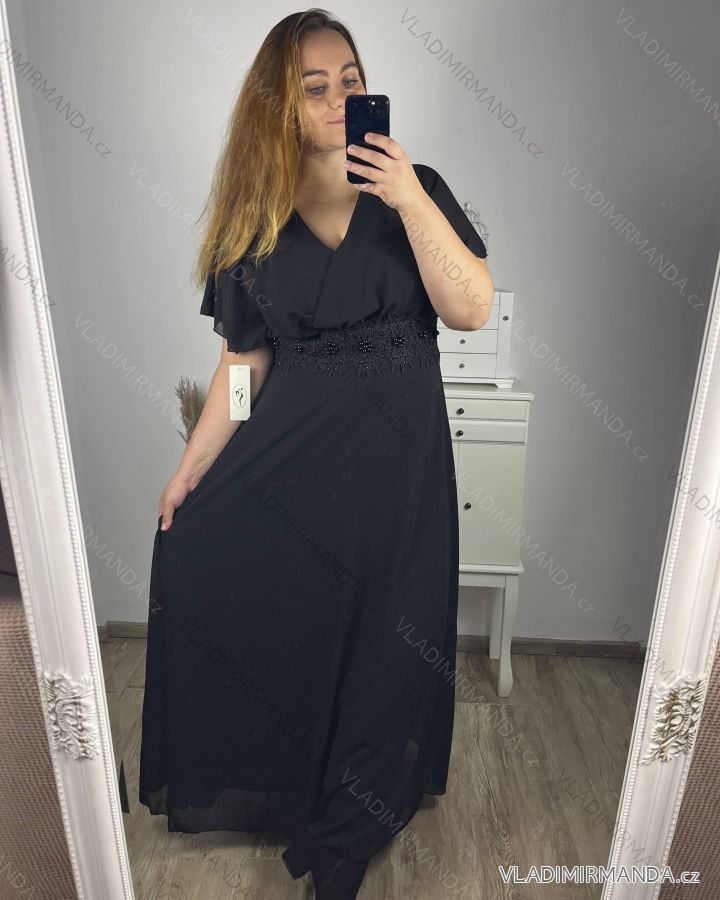 Šaty dlhé elegantné spoločenské krátky rukáv dámske nadrozmer (L/XL/2XL ONE SIZE) TALIANSKA MóDA IM423BRENDA