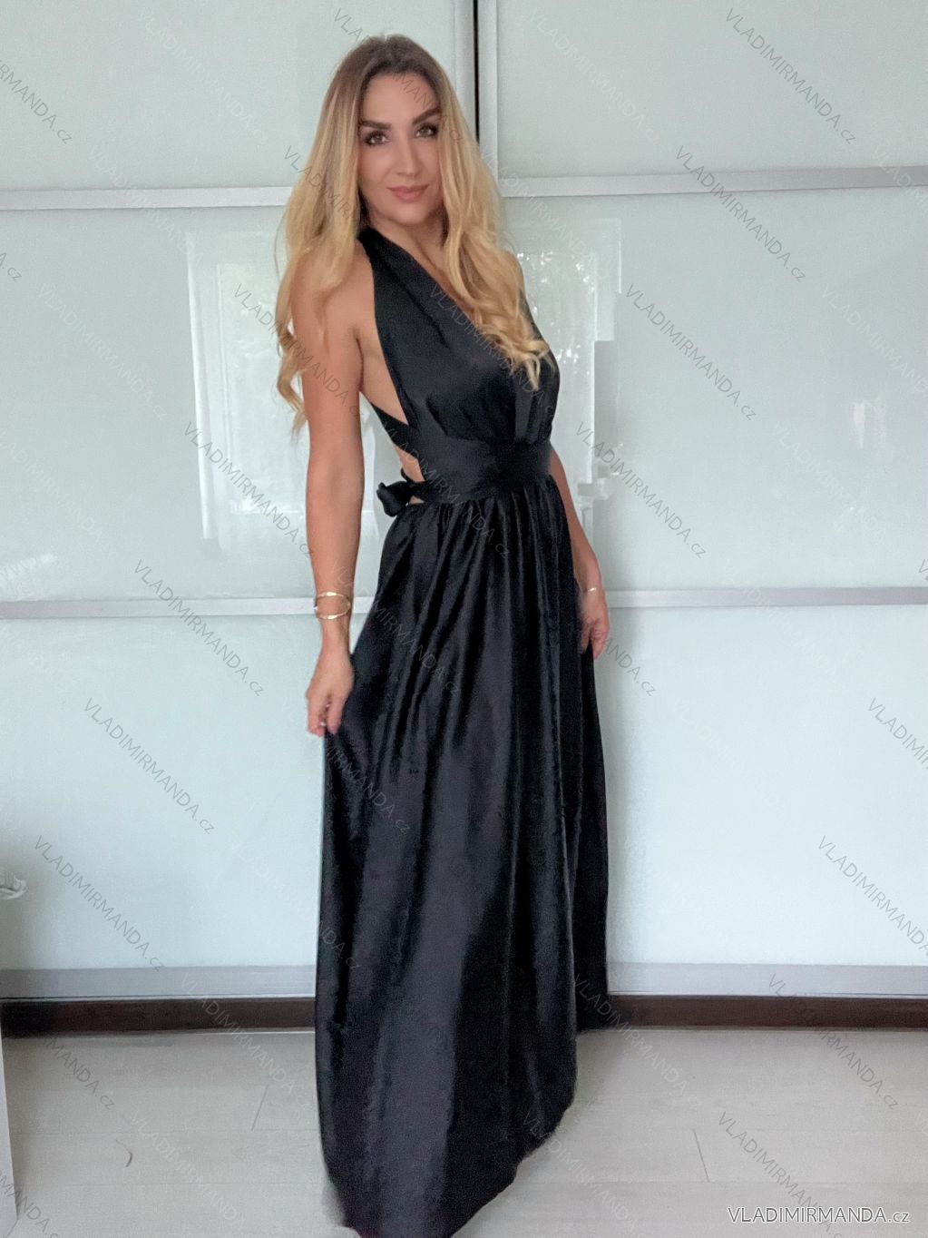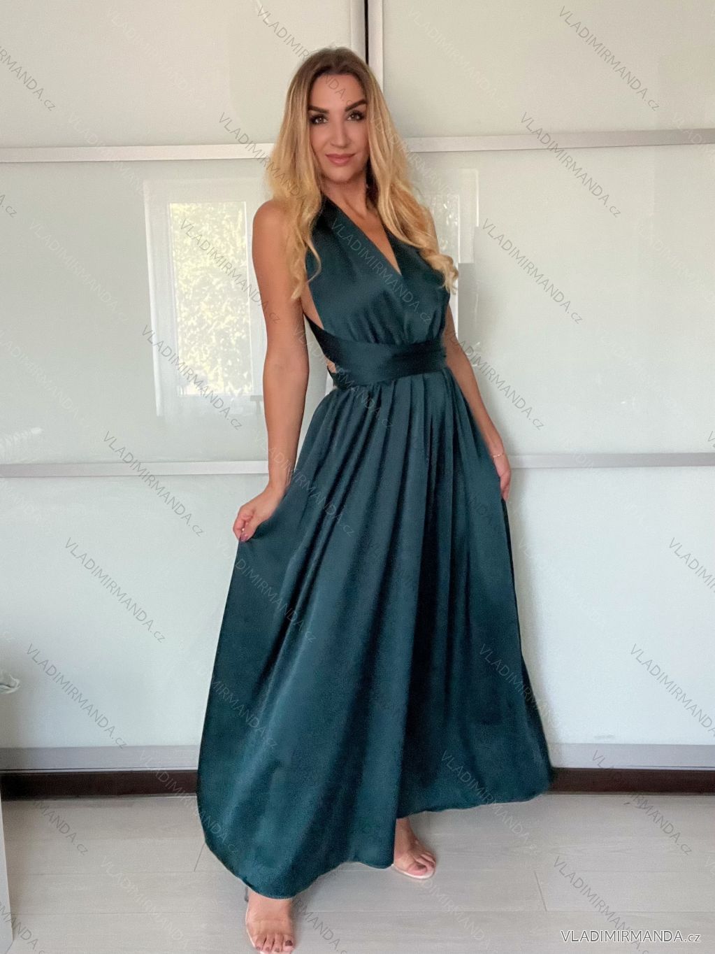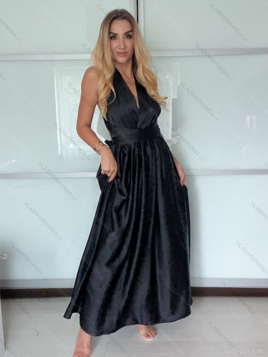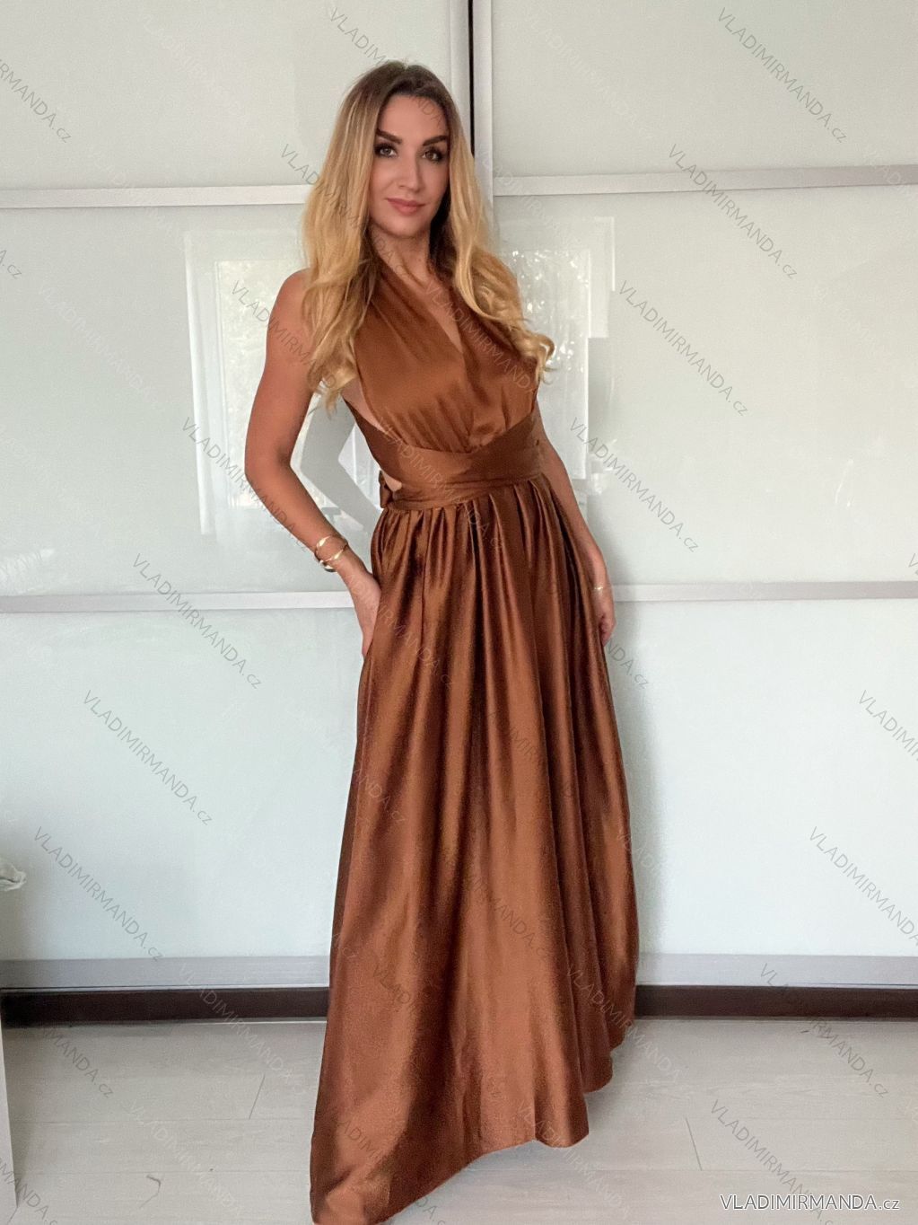 Šaty dlhé elegantné variabilné vázánie bez rukávov dámske satén (S/M ONE SIZE) TALIANSKA MÓDA IMPDY24MDUE991505