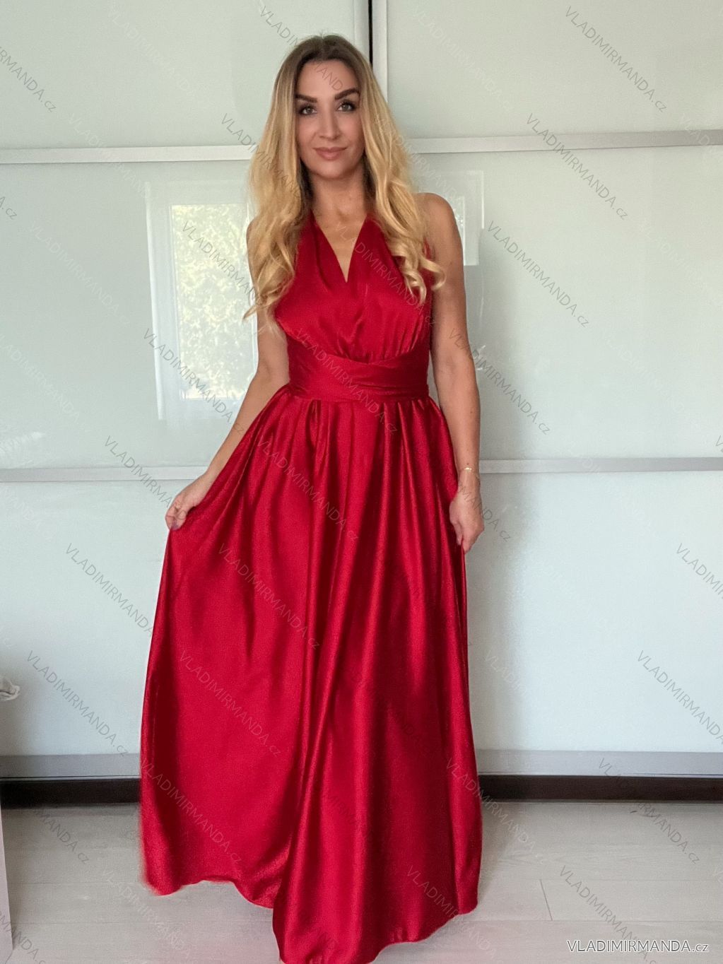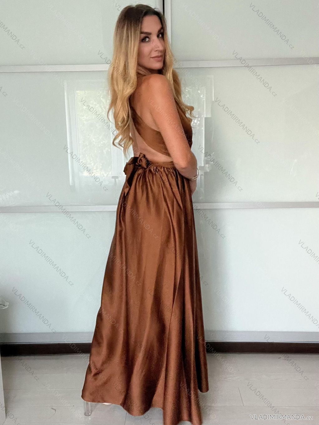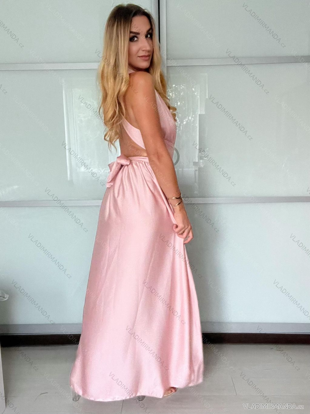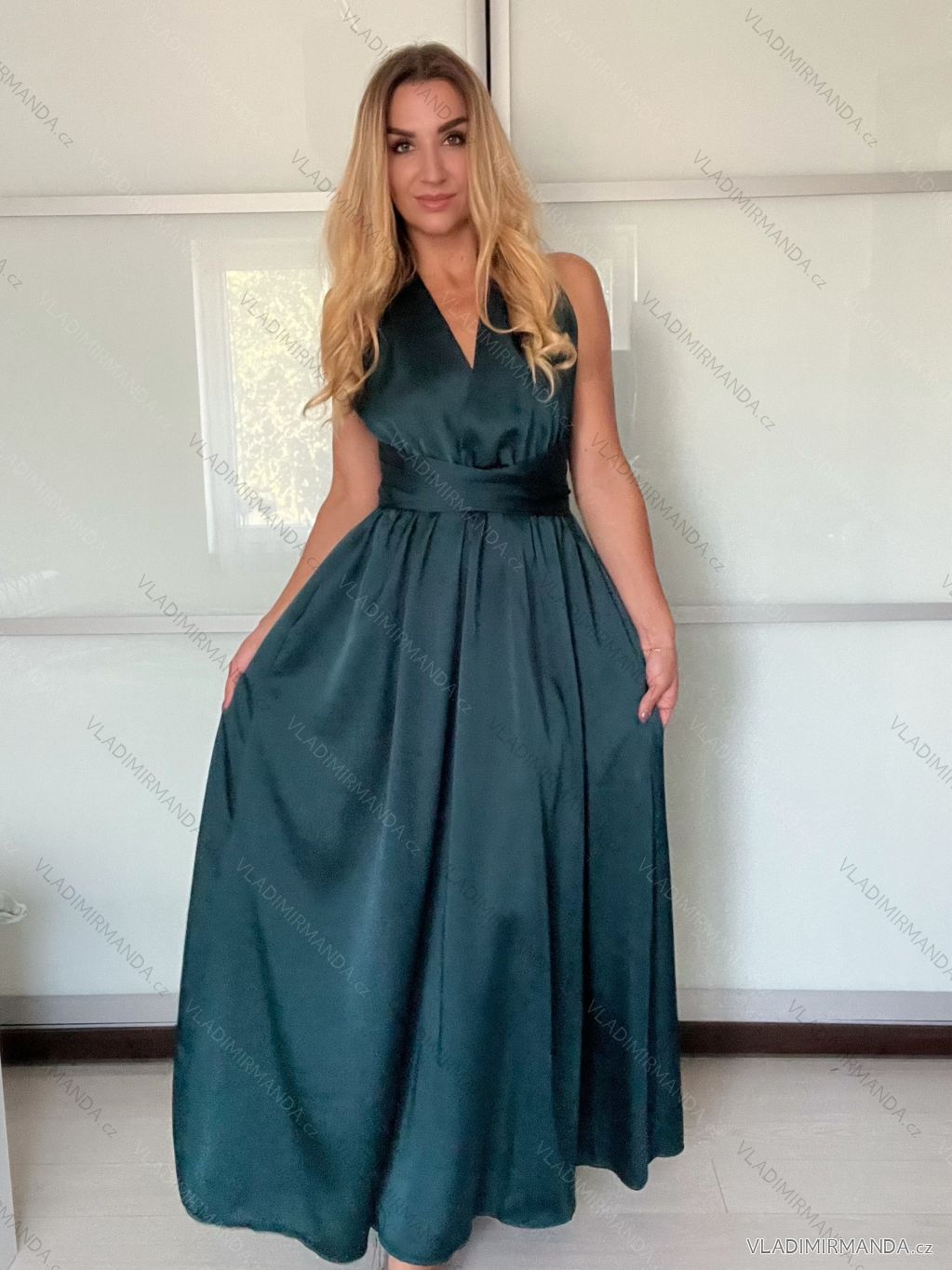 Šaty dlhé elegantné variabilné vázánie bez rukávov dámske satén (S/M ONE SIZE) TALIANSKA MÓDA IMPDY24MDUE991505