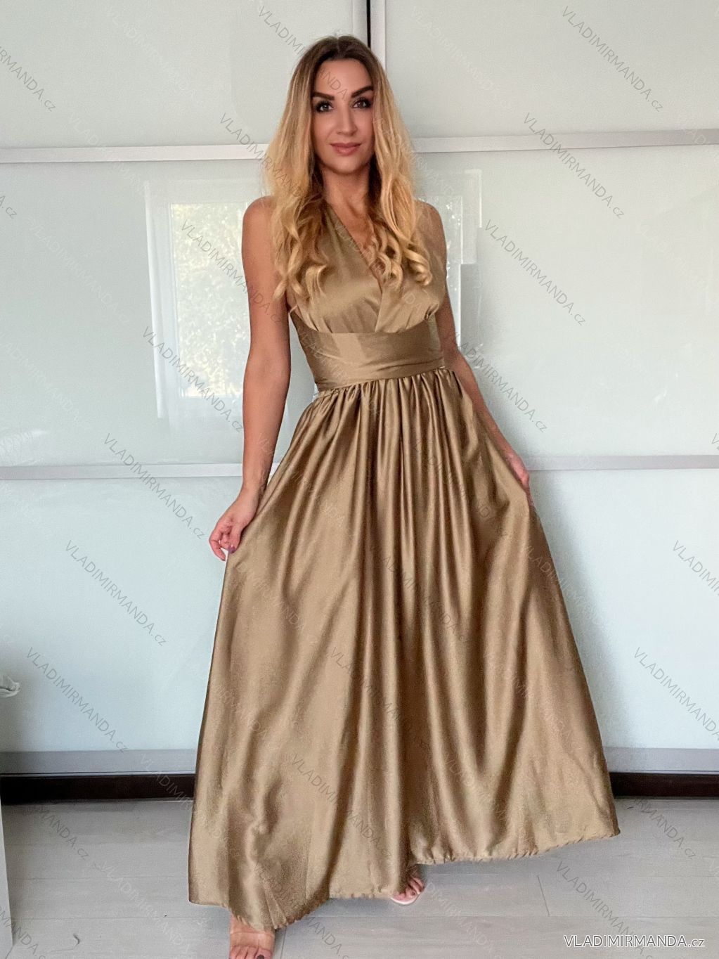 Splývavý Satén: Materiál s jemným leskem a příjemným omakem zajišťuje elegantní a luxusní vzhled. Šaty krásně splývají a lichotí postavě.