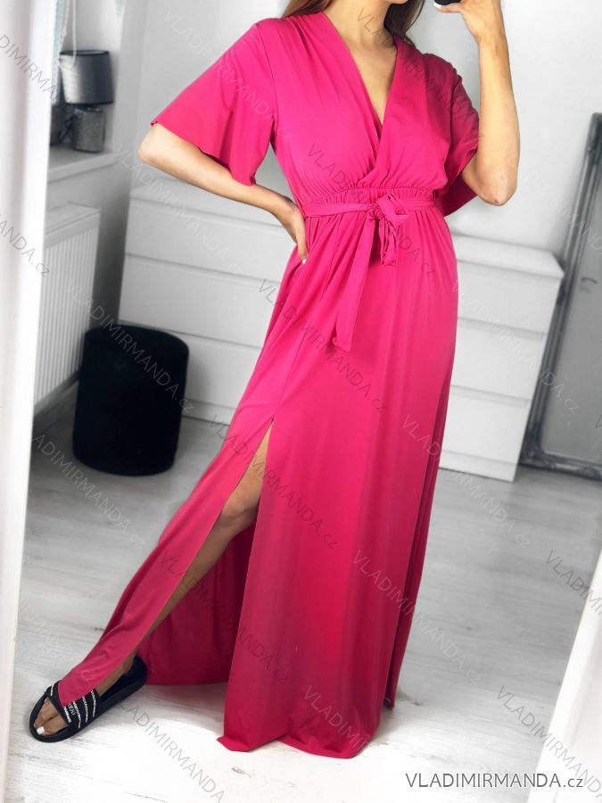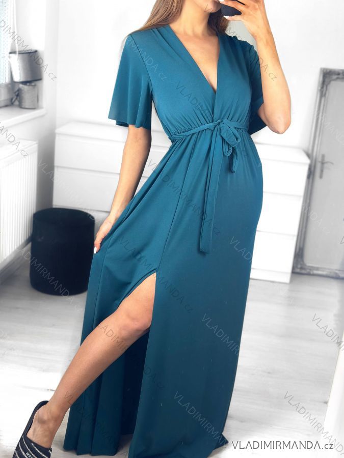 Šaty dlhé elegantný krátky rukáv dámske (S/M ONE SIZE) TALIANSKA MÓDA IMWE235478