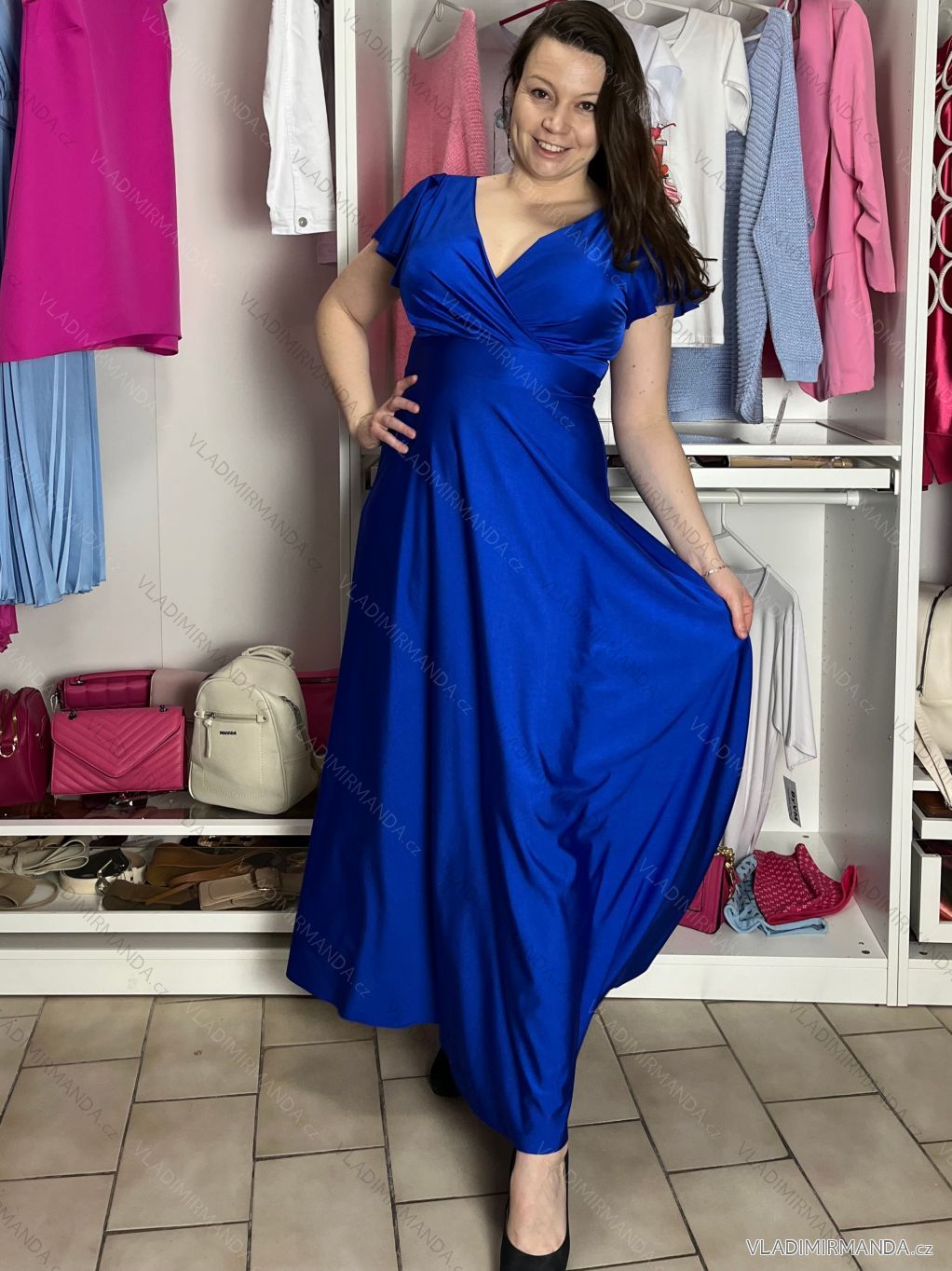 TOVAR (120476) > oblečenie dámske (81594) > šaty (30655) > Šaty spoločenské (5018) > Šaty plesové dlhé (3171) > Šaty dlhé elegantný krátky rukáv dámske ANNA (S/M/L ONE SIZE) TALIANSKA MÓDA IM4260024/DUR S/M/L modrá kráľovská