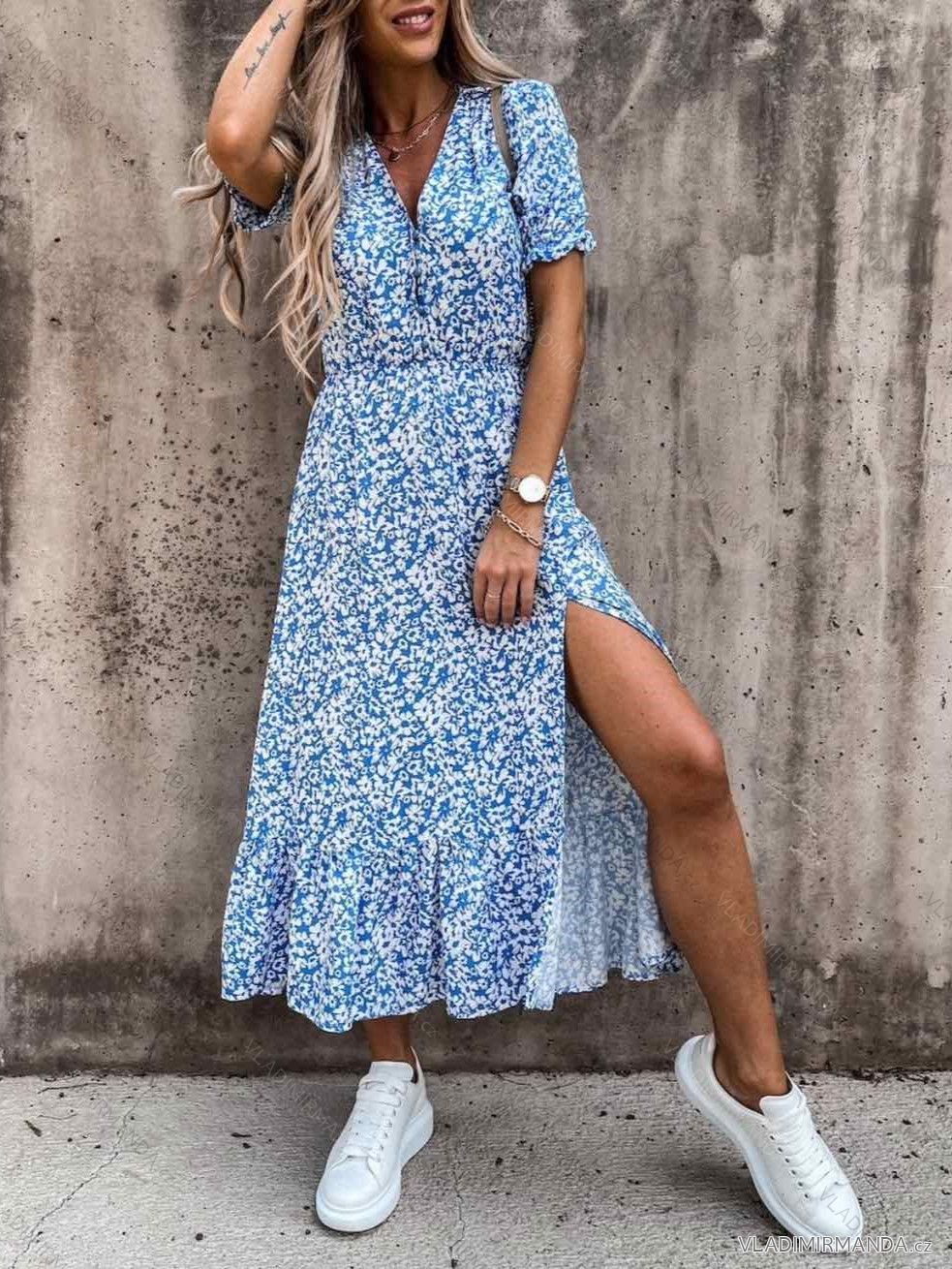 Šaty dlhé košeľové krátky rukáv dámske nadrozmer (42/44/46 ONE SIZE) TALIANSKA MÓDA IMWGB24042BIG