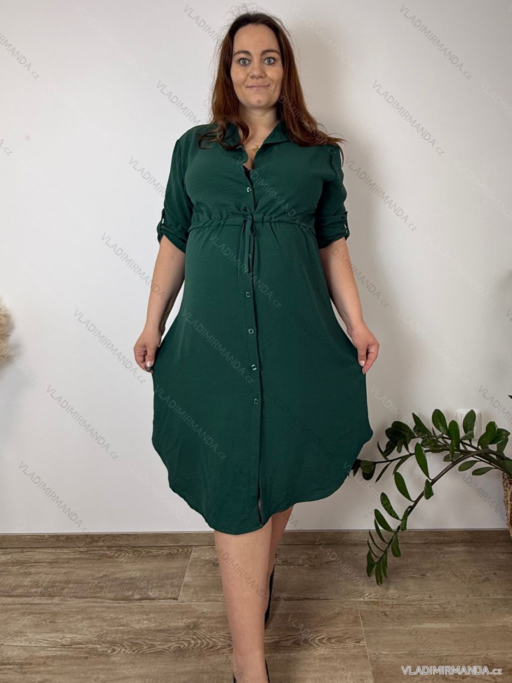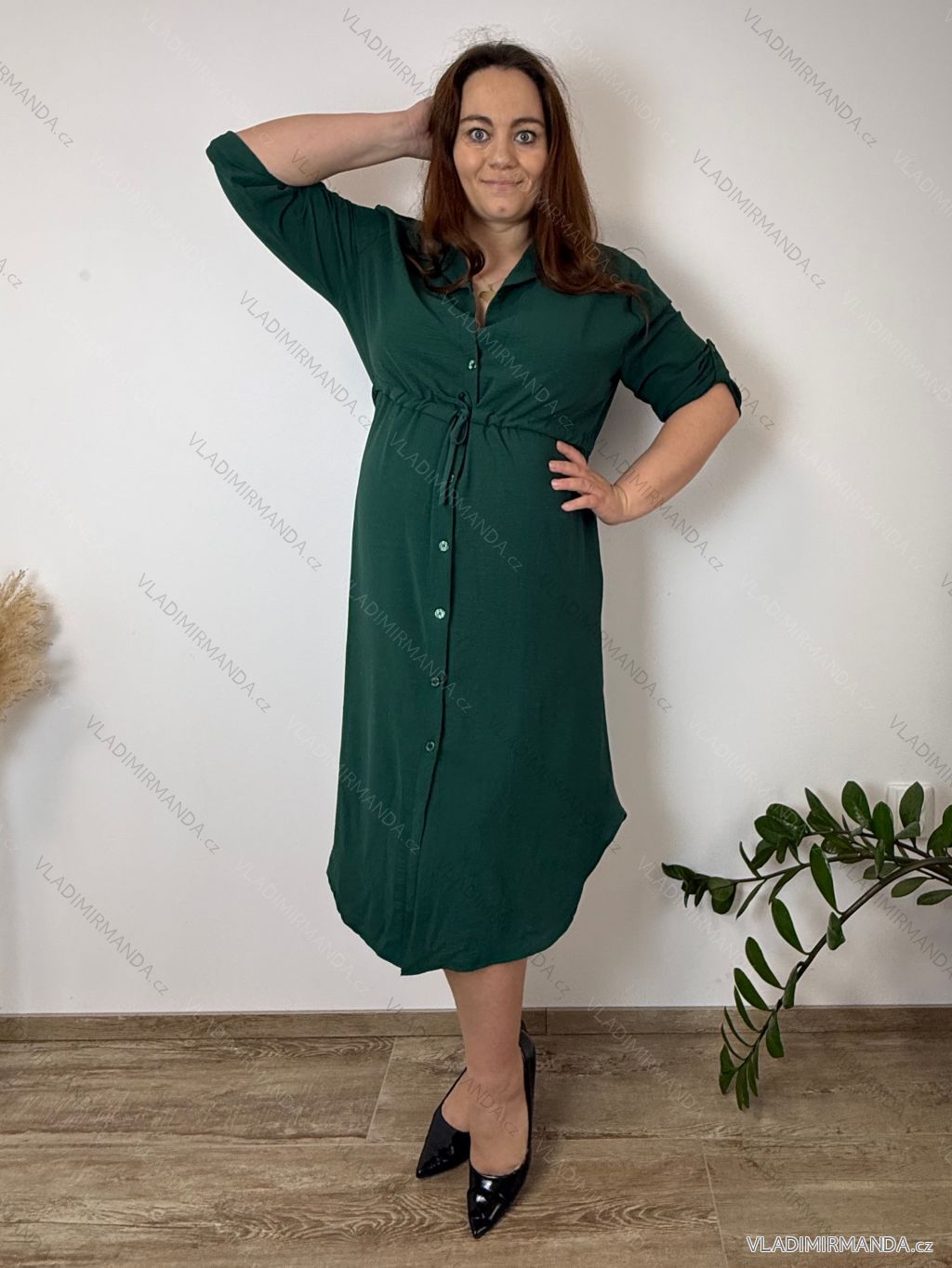 Šaty dlhé košeľové sťahovací dlhý rukáv dámske nadrozmer (48/50/52 ONE SIZE) TALIANSKA MÓDA IM425081/DUR červená 50/52