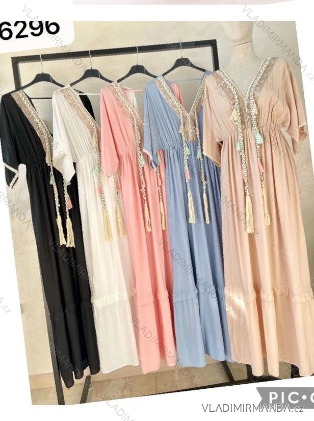 TOVAR (120336) > oblečenie dámske (81520) > šaty (30643) > Šaty dlhé krajkové krátky rukáv dámske (S/M/L ONE SIZE) TALIANSKA MÓDA IMWB221496