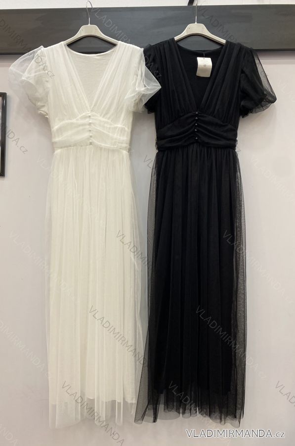 TOVAR (125115) > oblečenie dámske (81789) > šaty (30893) > Šaty dlhé krajkové tylové krátky rukáv dámske (S/M ONE SIZE) TALIANSKA MÓDA IMWA222039