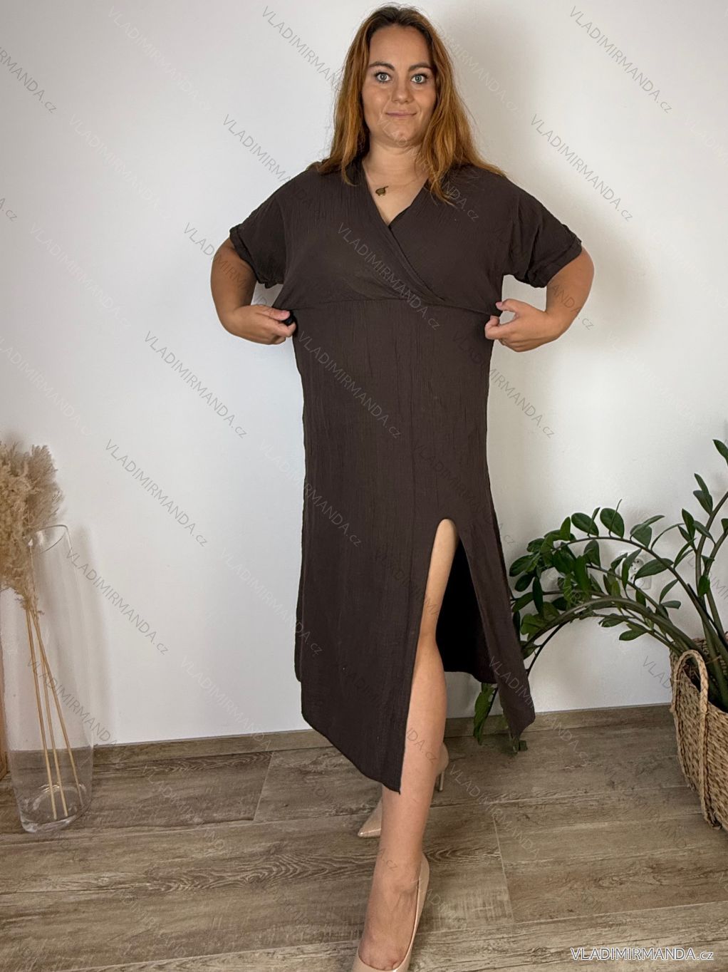 Šaty dlhé letné mušelínové krátky rukáv dámske JANET (44/46/48 ONE SIZE) TALIANSKA MÓDA IMWBR252312/DUR 44/46/48 hnedá