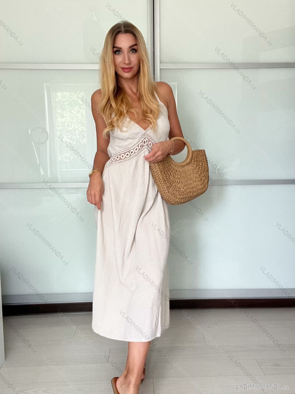Šaty dlhé letné mušelínové na ramienka dámske (XS/S/M ONE SIZE) TALIANSKA MÓDA IMWGS25SARA
