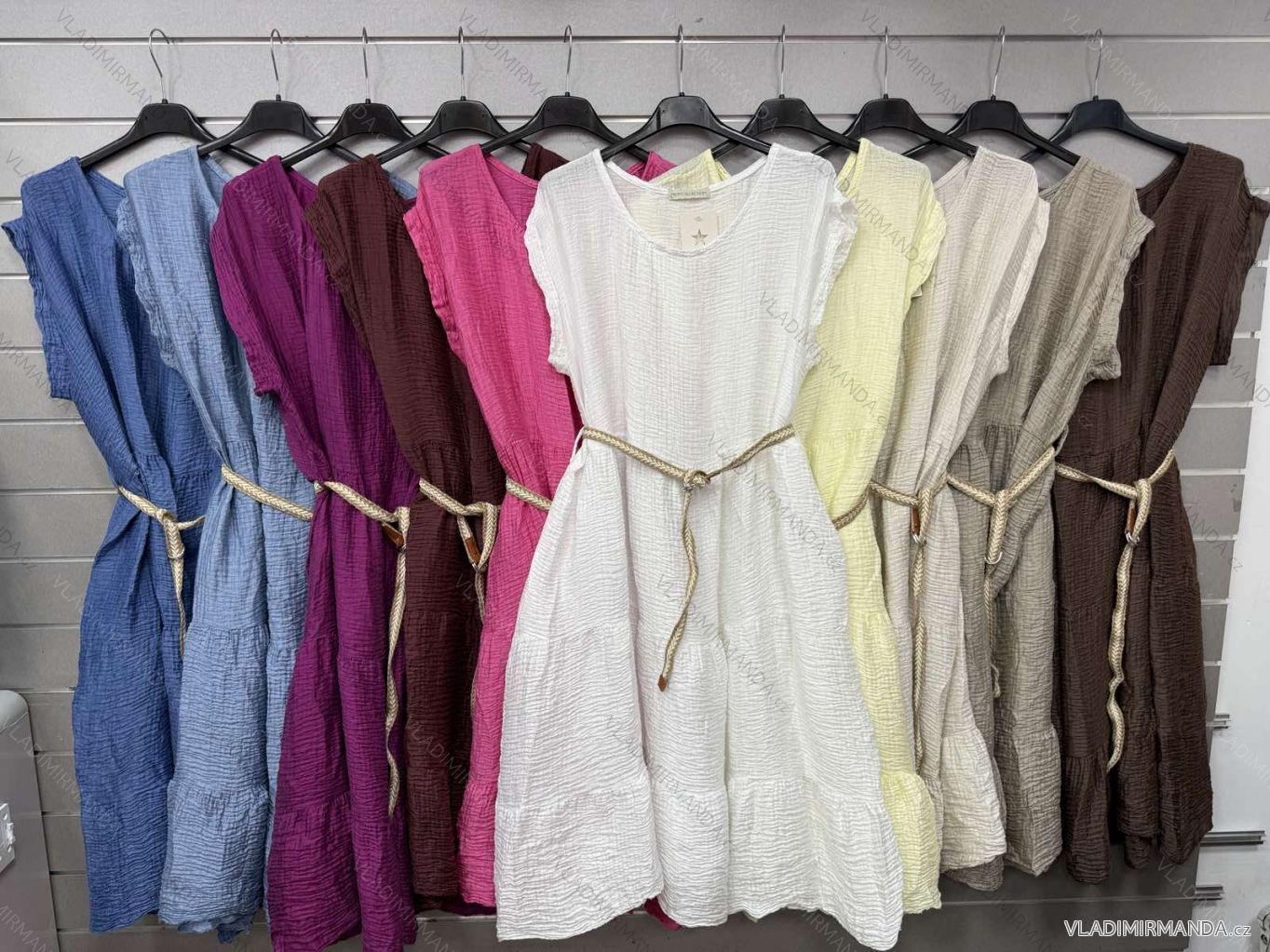 Šaty dlhé letné mušelínové s opaskom krátky rukáv dámske (XS/S/M ONE SIZE) TALIANSKA MÓDA IMWGS251545