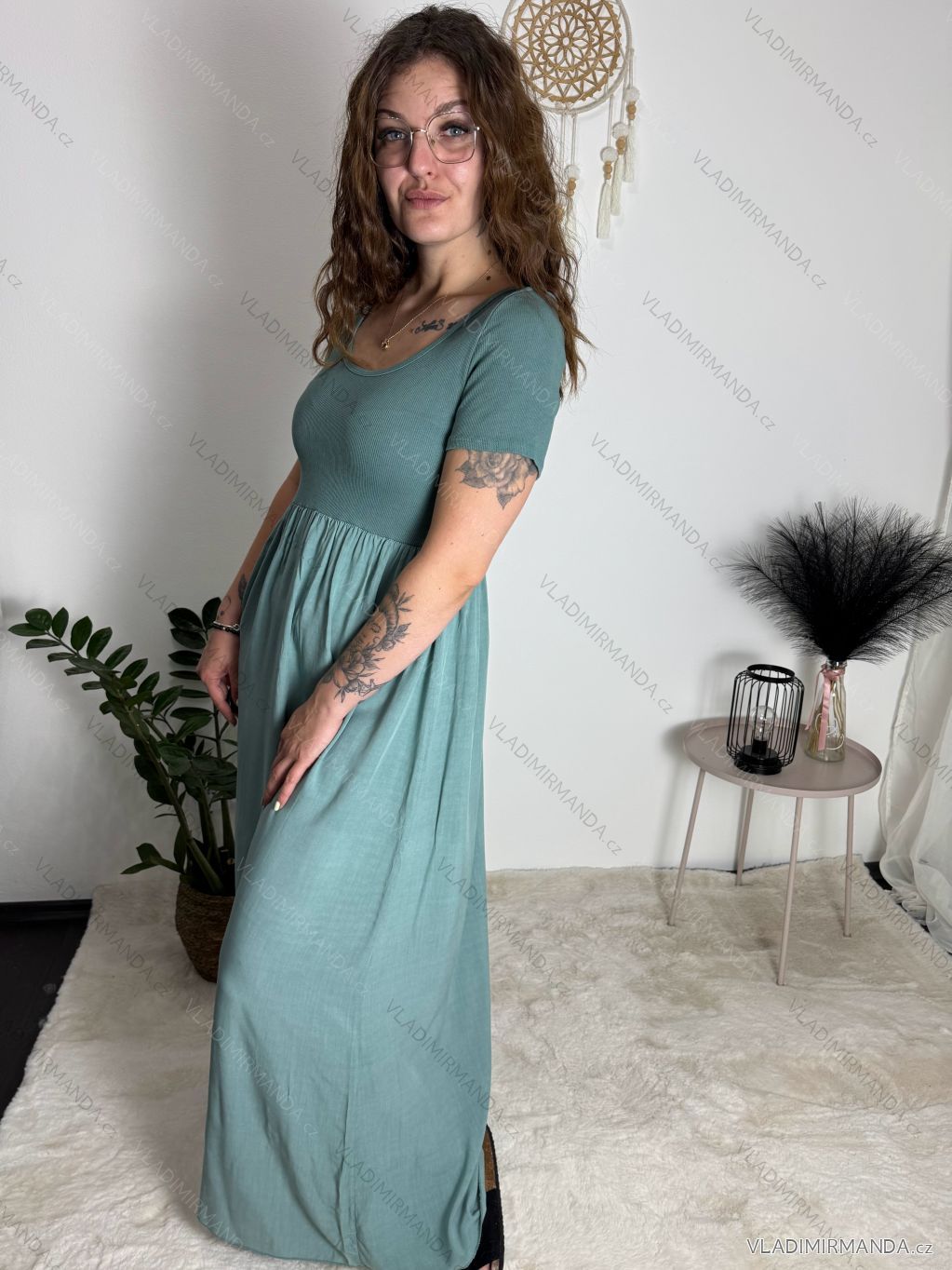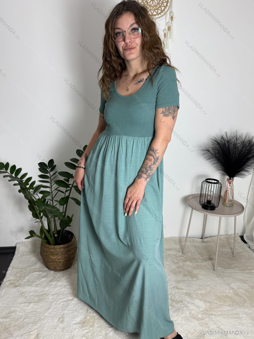Šaty dlhé letné rebrované krátky rukáv dámske (XS/S/M/L ONE SIZE) TALIANSKA MÓDA IMSM25128