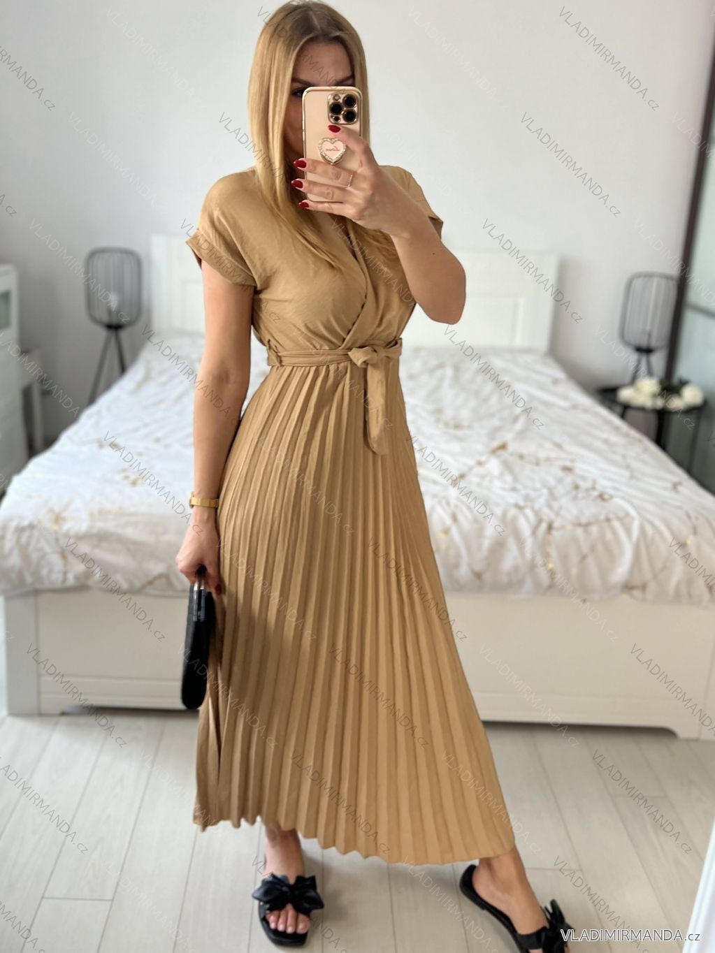 Dlhé, letné, skladané šaty s krátkym rukávom