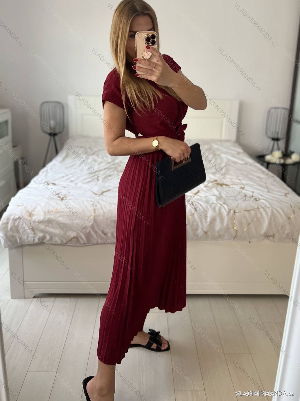 Šaty dlhé letné skládané krátky rukáv dámske ZUZA (S/M/L ONE SIZE) TALIANSKA MÓDA IMD251761/DUR petrolejová S/M/L
