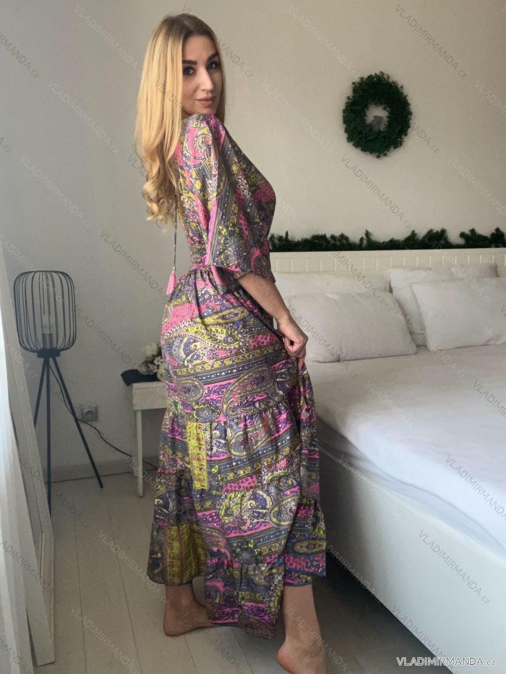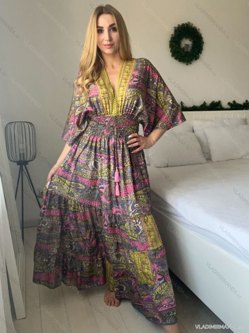 TOVAR (120686) > oblečenie dámske (82136) > šaty (31068) > Šaty indické (160) > Šaty dlhé letné zavinovacie indické krátky rukáv dámske (S/M/L ONE SIZE) INDICKÁ MÓDA IMWKA24567-4/DUR - ružová - M / L