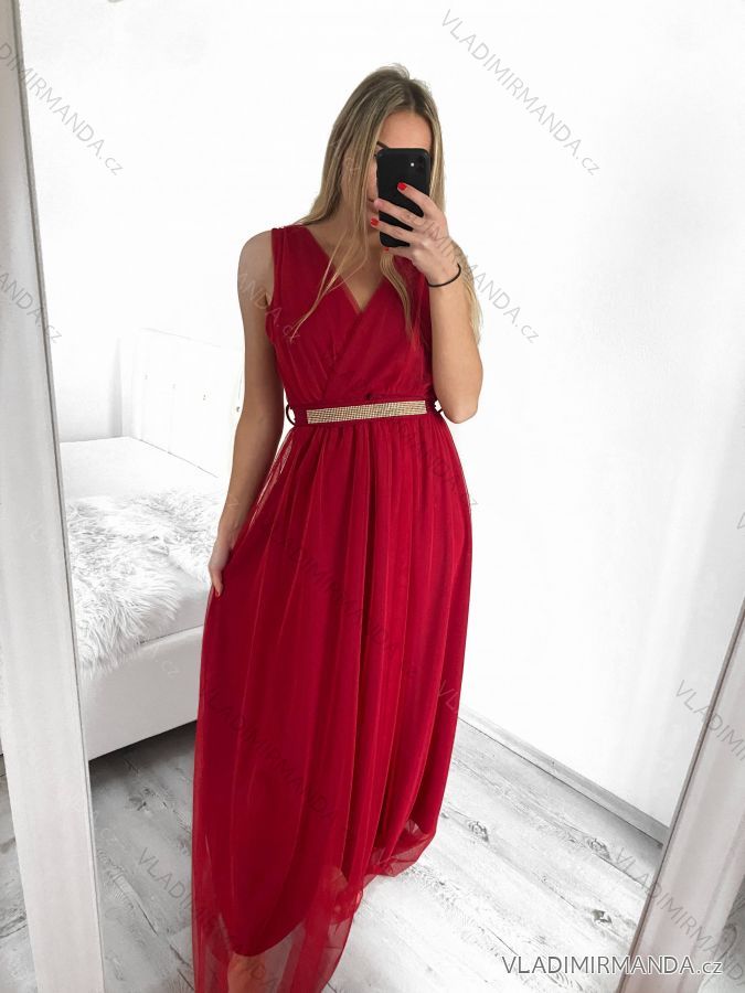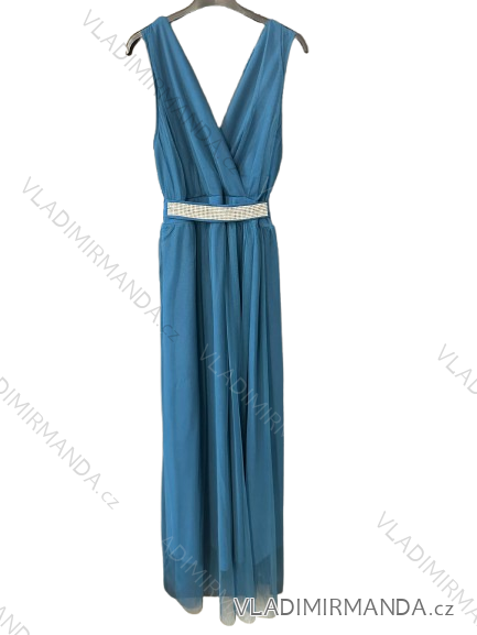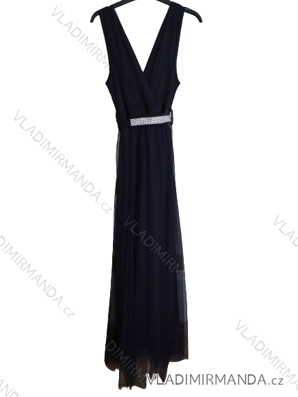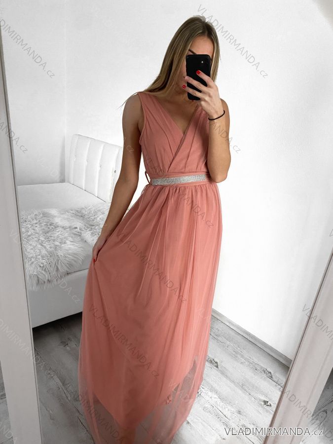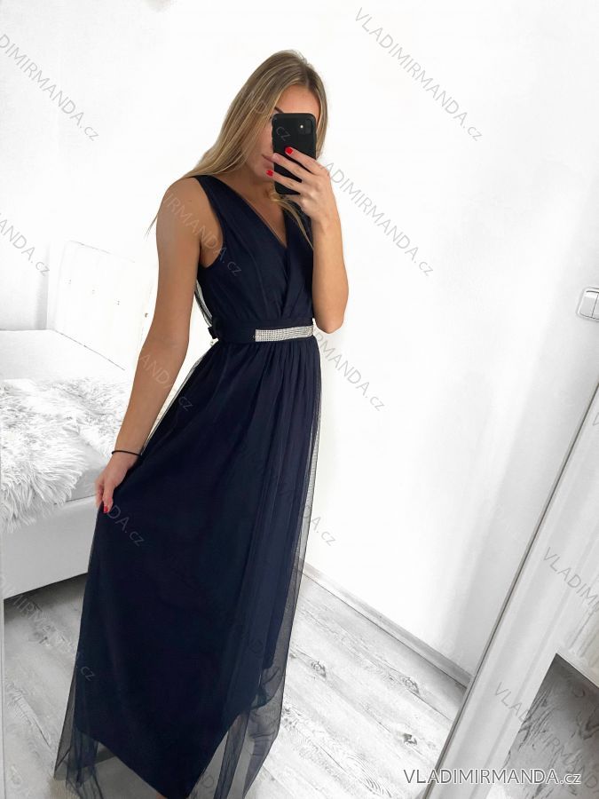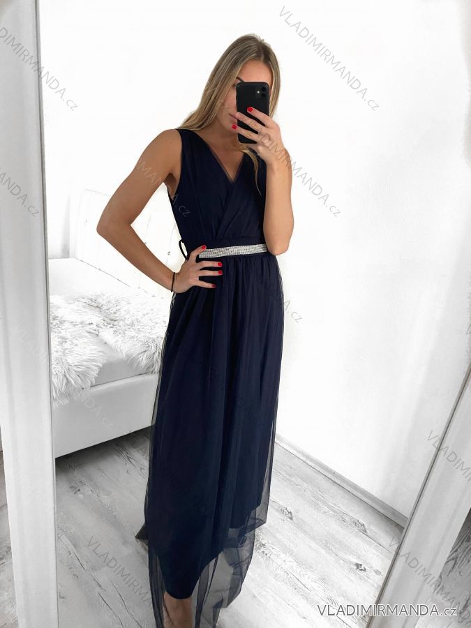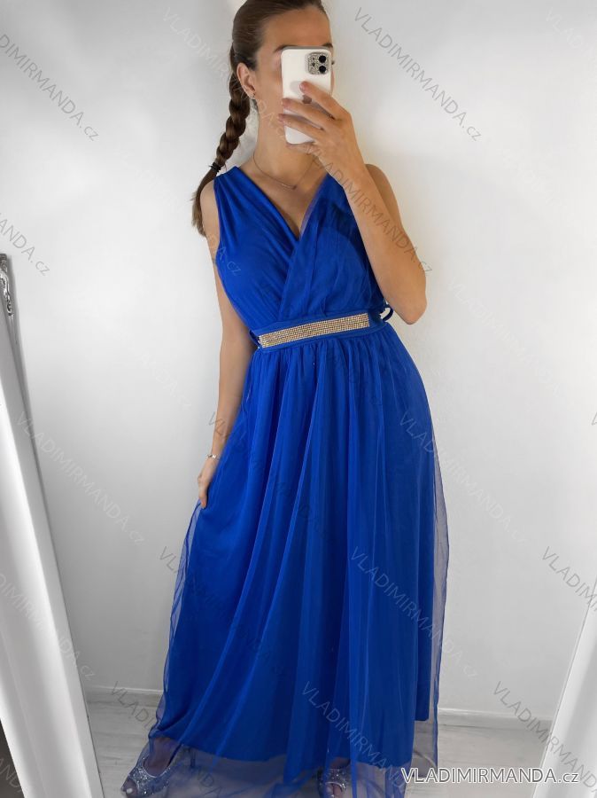 Šaty dlhé na ramienka tilové spoločenské elegantné plesové s opaskom dámske (S/M ONE SIZE) TALIANSKA MÓDA IMM22Q52232