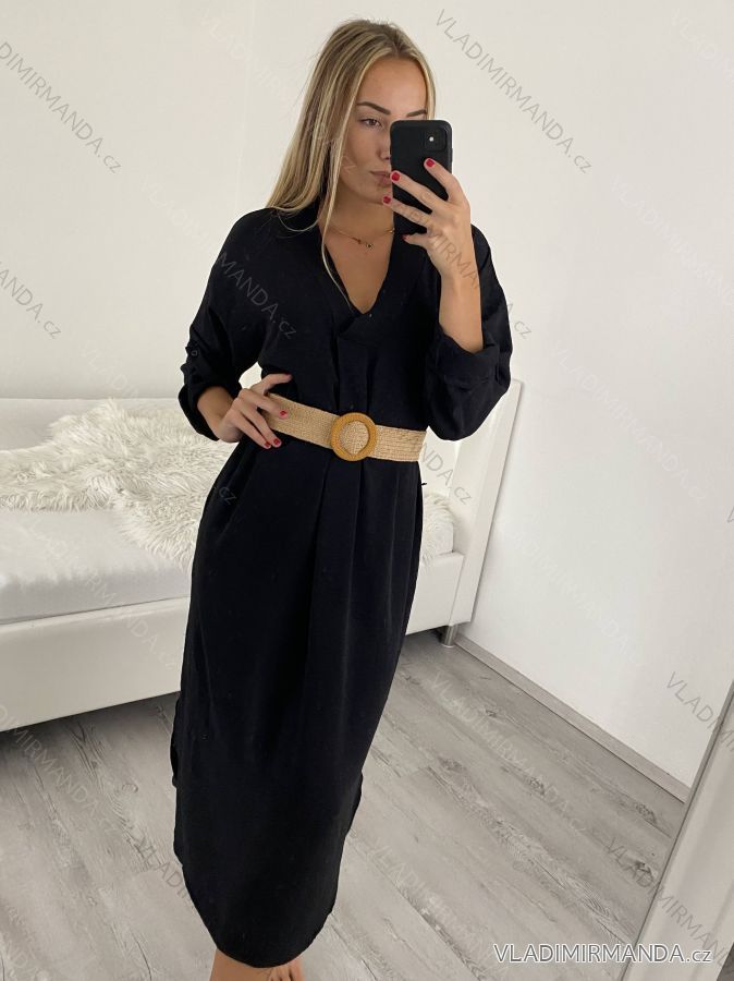 Šaty dlhé s opaskom dlhý rukáv dámske (S/M ONE SIZE) TALIANSKA MÓDA IMPLI236060