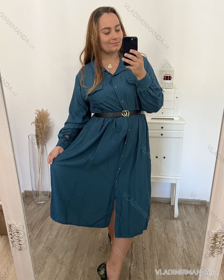 Šaty dlhé s páskem dlhý rukáv dámske nadrozmer (2XL/3XL ONE SIZE) TALIANSKA MÓDA IMWEC23KNOB