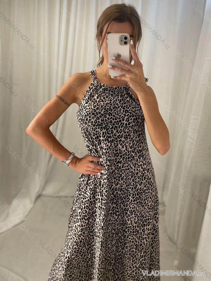 Šaty dlhé saténové bez rukávu letný leopard dámske (S/M/L ONE SIZE) TALIANSKA MÓDA IMM22977