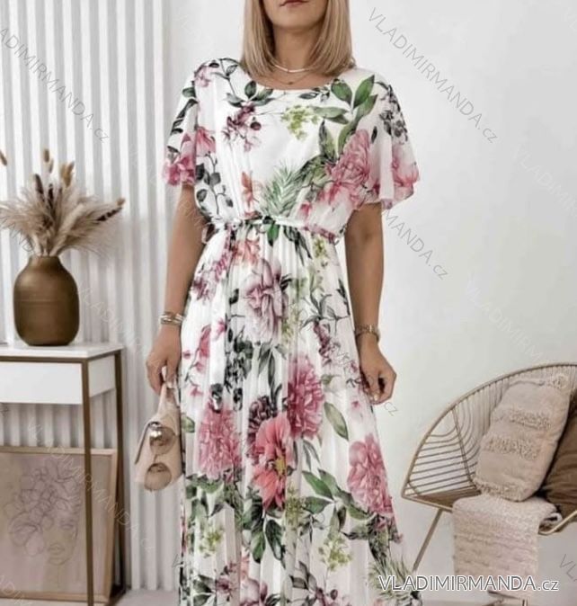 Šaty dlhé šifónové letné kvetované krátky rukáv dámske nadrozmer (50/52/54 ONE SIZE) TALIANSKA MÓDA IMWGM251723