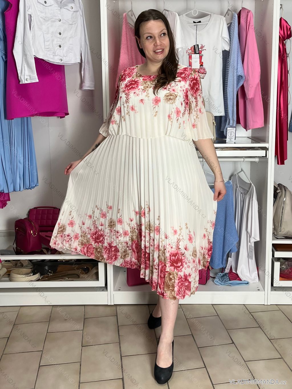 Šaty dlhé skladané krátký rukáv dámske nadrozmer (40/42/44 ONE SIZE) TALIANSKA MÓDA IMWHA261113/DU modrá