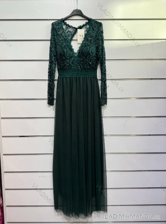 TOVAR (119264) > oblečenie dámske (80626) > šaty (30254) > Šaty dlhé spoločenské dlhý rukáv dámske (S/M ONE SIZE) TALIANSKA MÓDA IMPSH245433 tmavo zelená S / M
