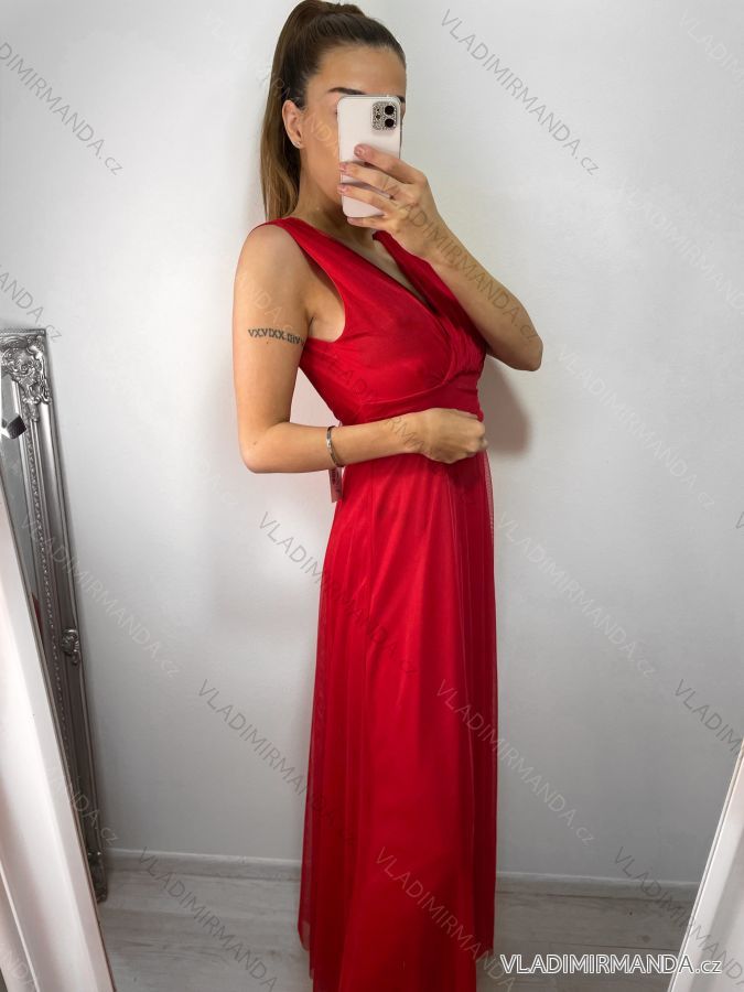 Šaty dlhé spoločenské elegantné bez rukávov dámske (S/M ONE SIZE) TALIANSKA MÓDA IMPSH233584/DU S/M červená