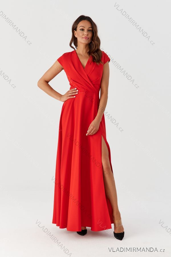 Šaty dlhé spoločenské krátky rukáv dámske (36-56) POLSKÁ MÓDA PMLMR23AFRODYTA-4 červená 36