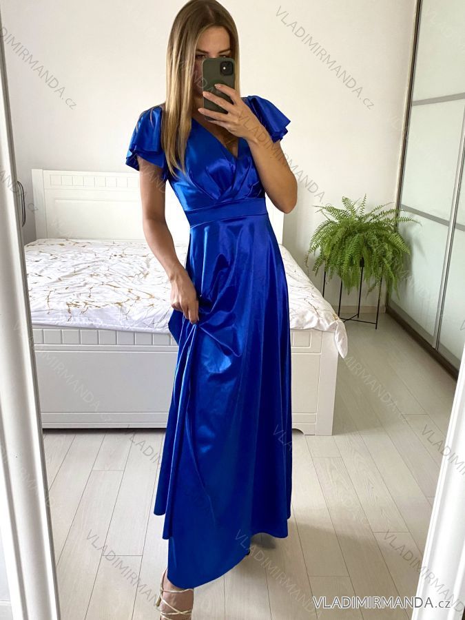 TOVAR (119956) > oblečenie dámske (81256) > šaty (30570) > Šaty dlhé spoločenské krátky rukáv dámske (S/M ONE SIZE) TALIANSKA MÓDA IMPSH246540 zlatá S / M