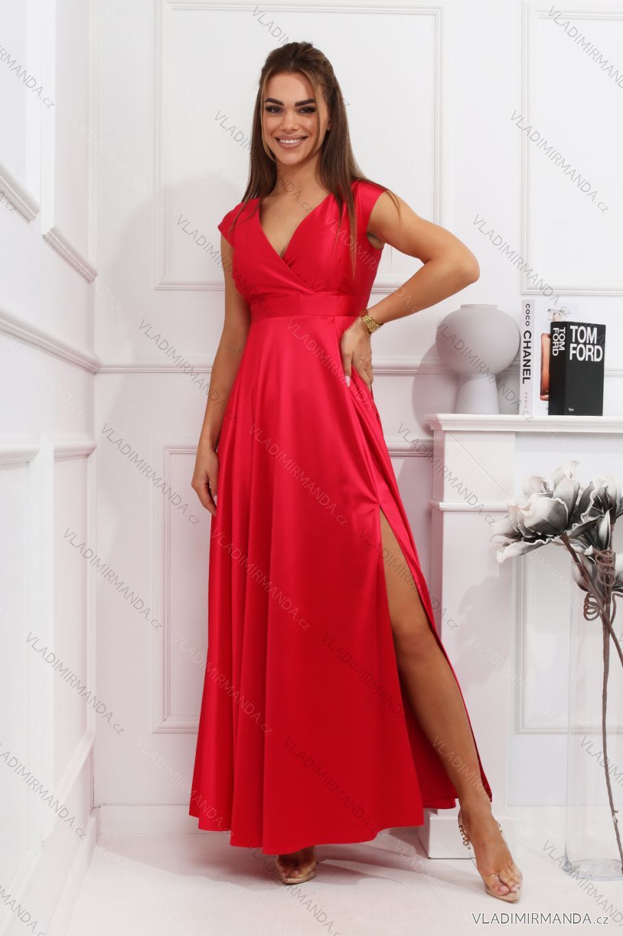 TOVAR (119632) > oblečenie dámske (81072) > šaty (30443) > Šaty dlhé spoločenské krátky rukáv dámske (34-50) POLSKÁ MÓDA PMLMR23VALERIA-2 červená 34