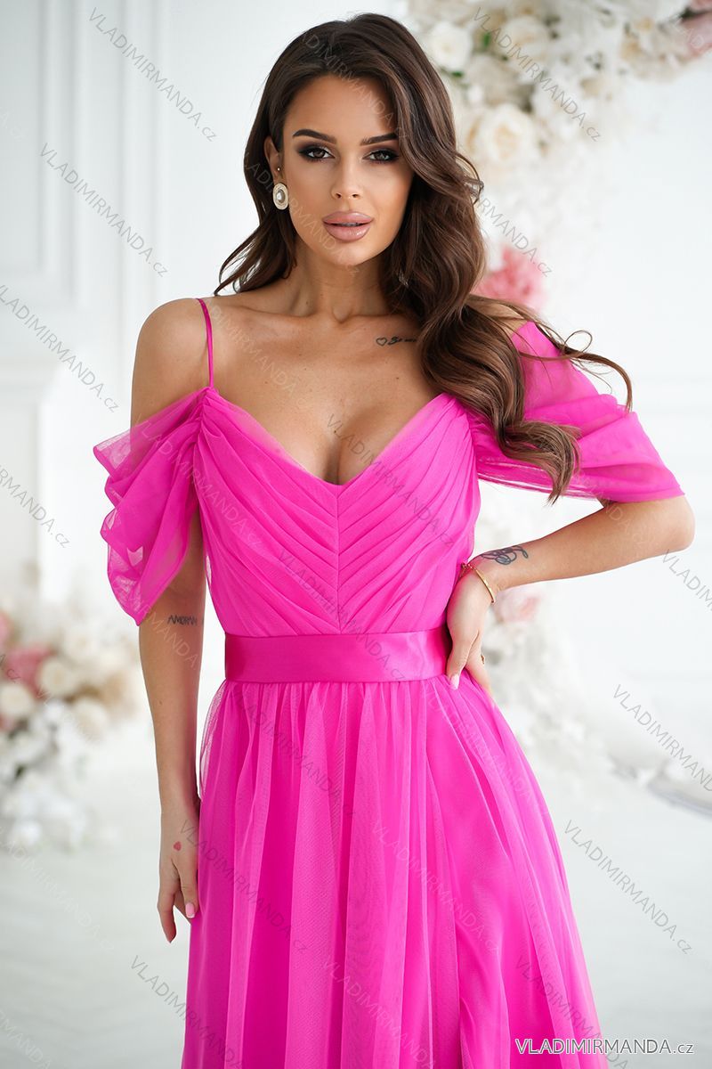 Šaty dlhé spoločenské na ramienka dámske (34-40) POLSKÁ MÓDA PMLBC24310-07 ružová fuchsiová 34