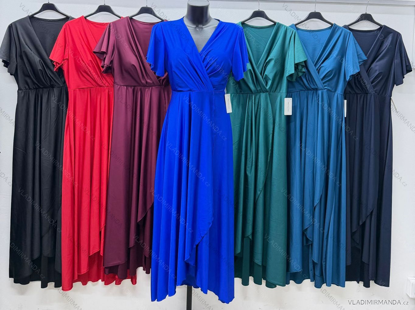 Dlouhé společenské šaty s krátkým rukávem